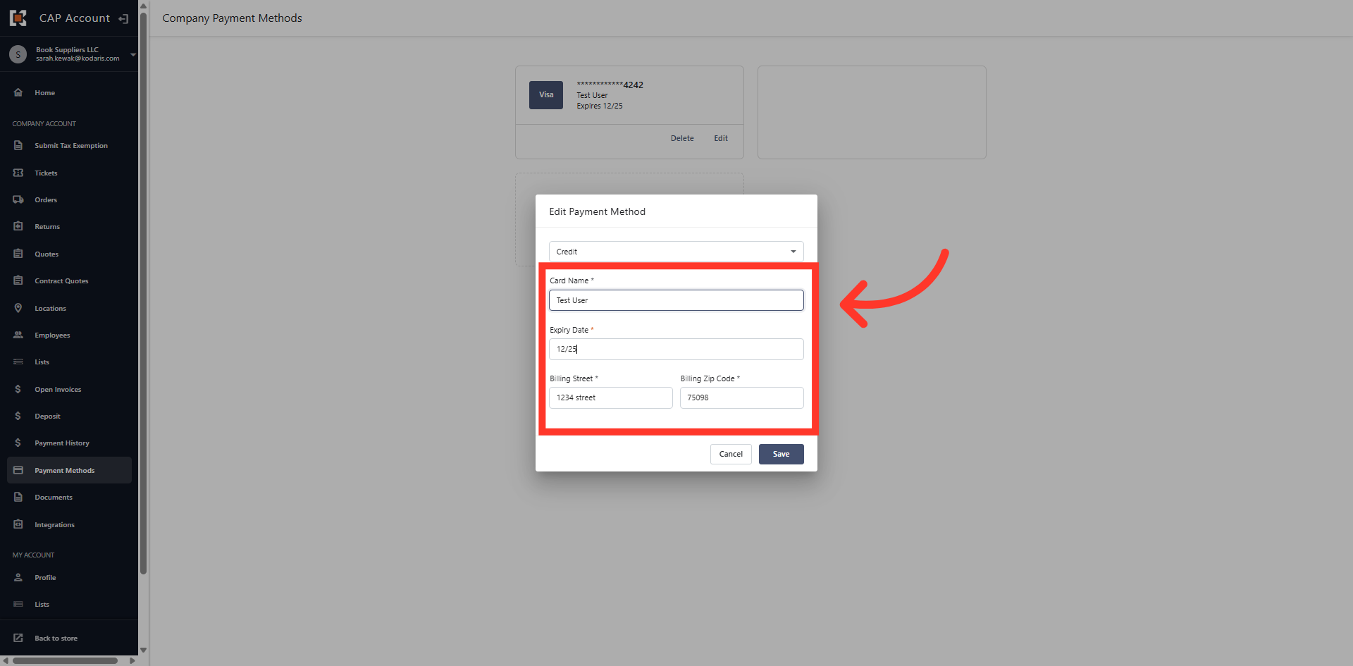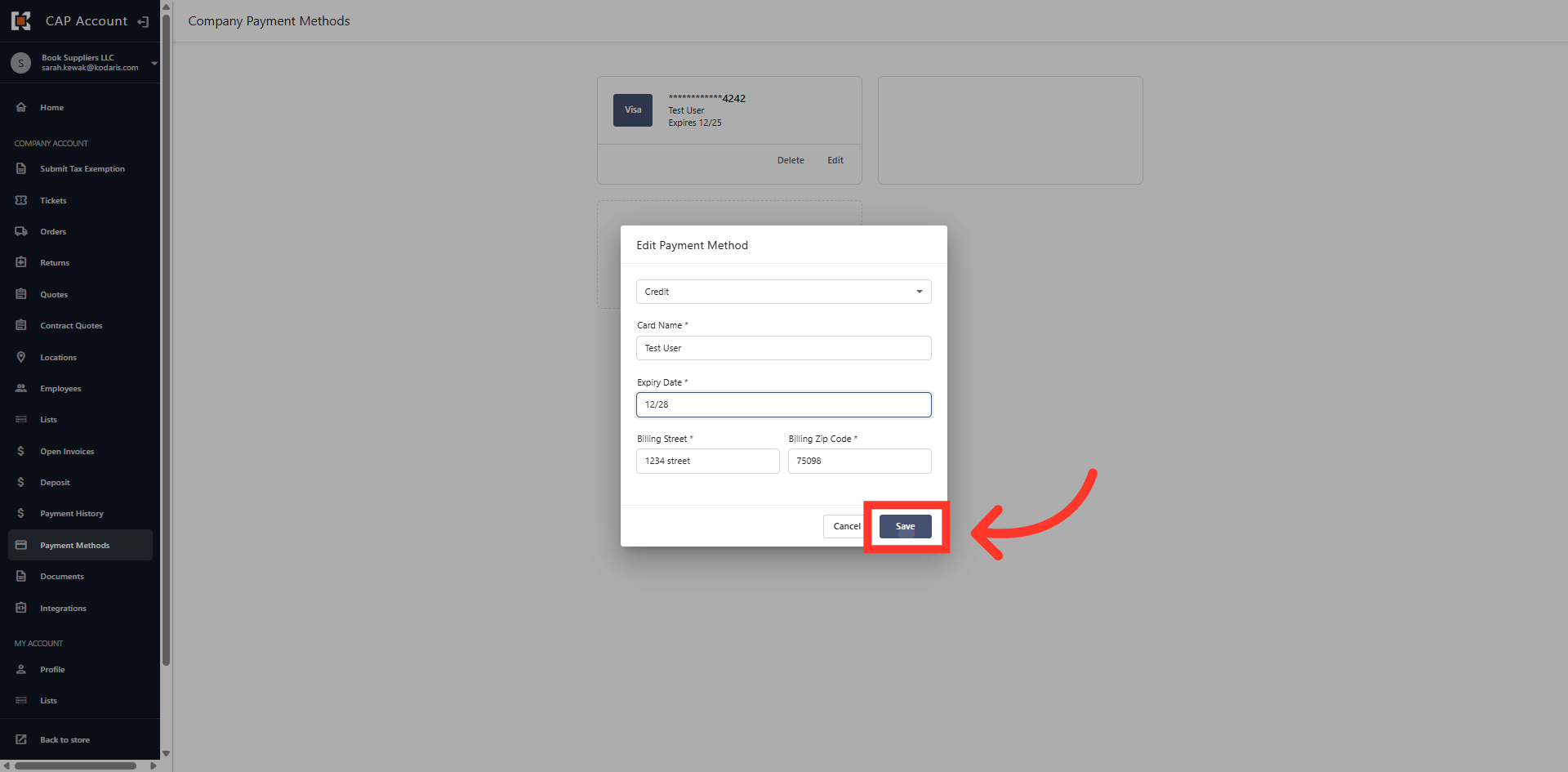 Once the information has been updated, click "Save" to save the change to the payment method.