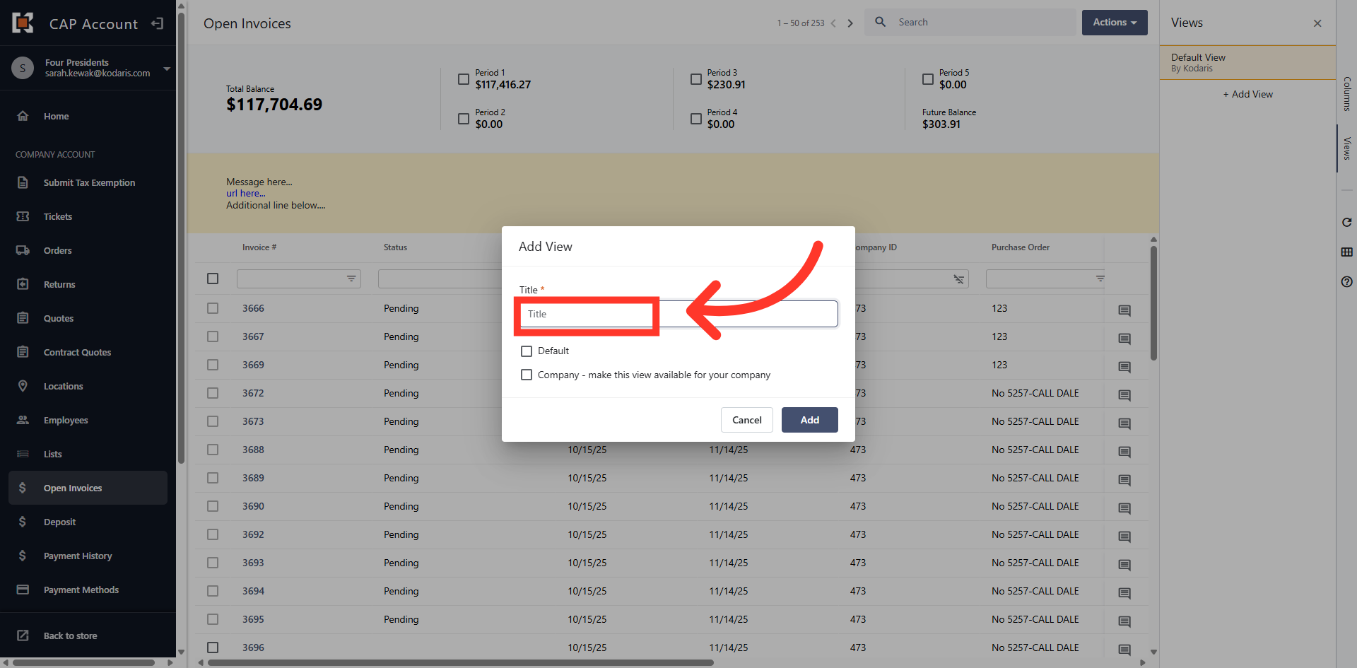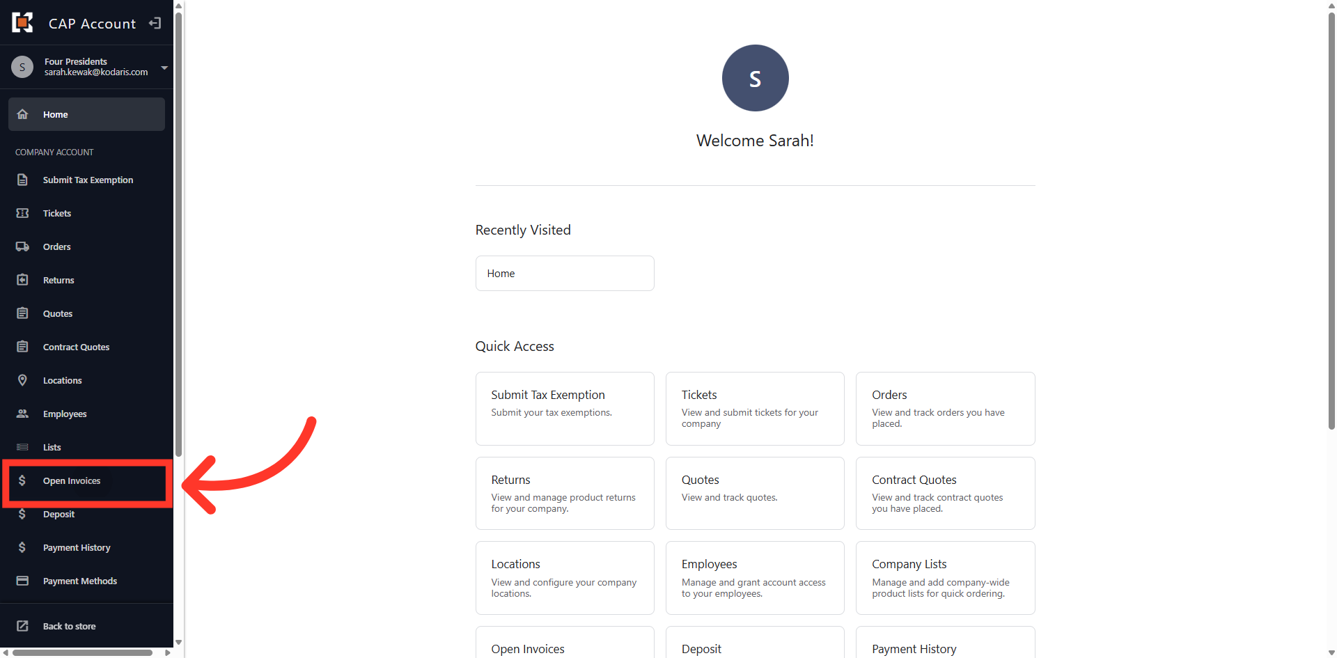 You can view Account Balances and Open Invoices in the Customer Portal by navigating to the "Open Invoices" section. In order to complete these actions, you will need the "Accounts Payable" permission.