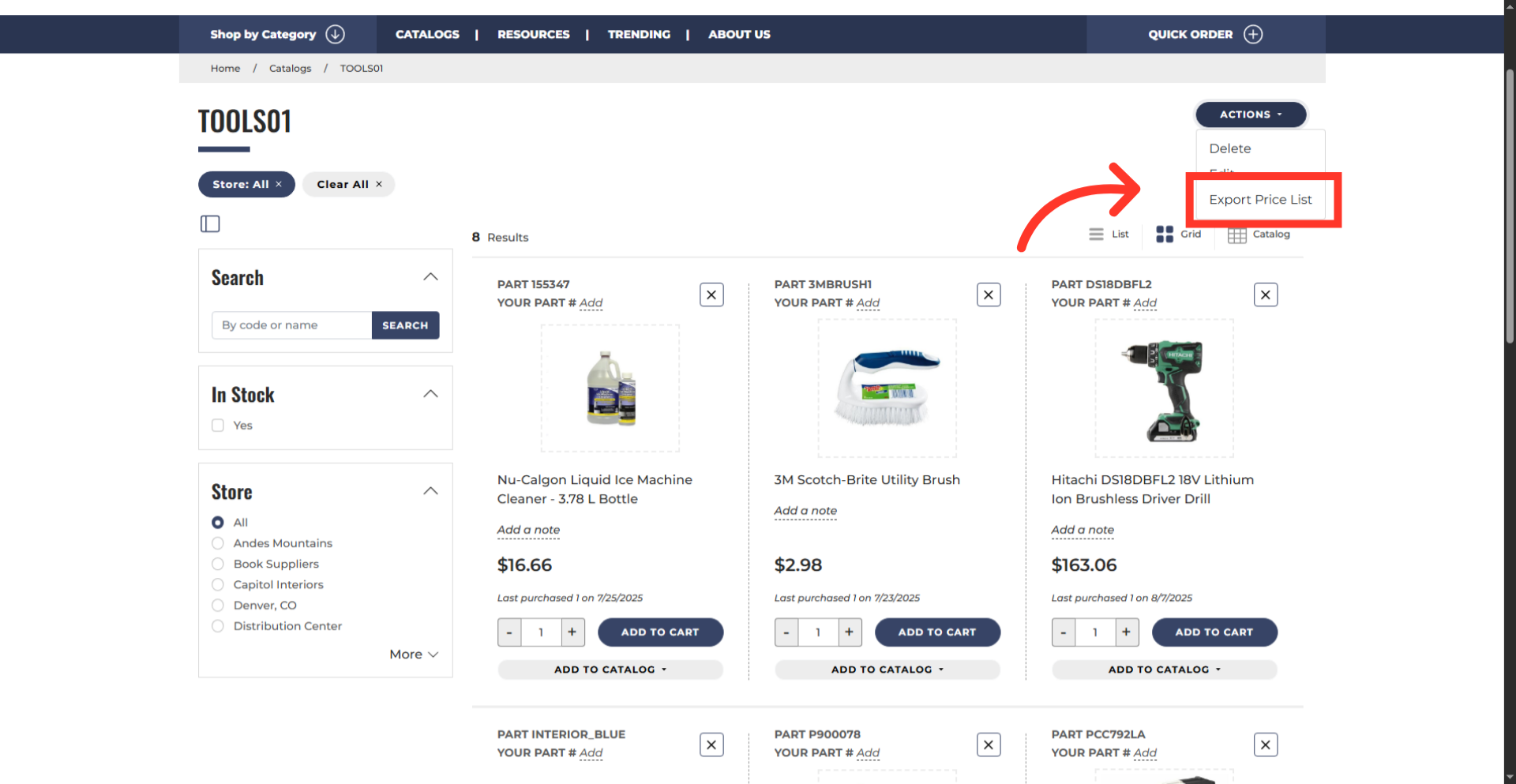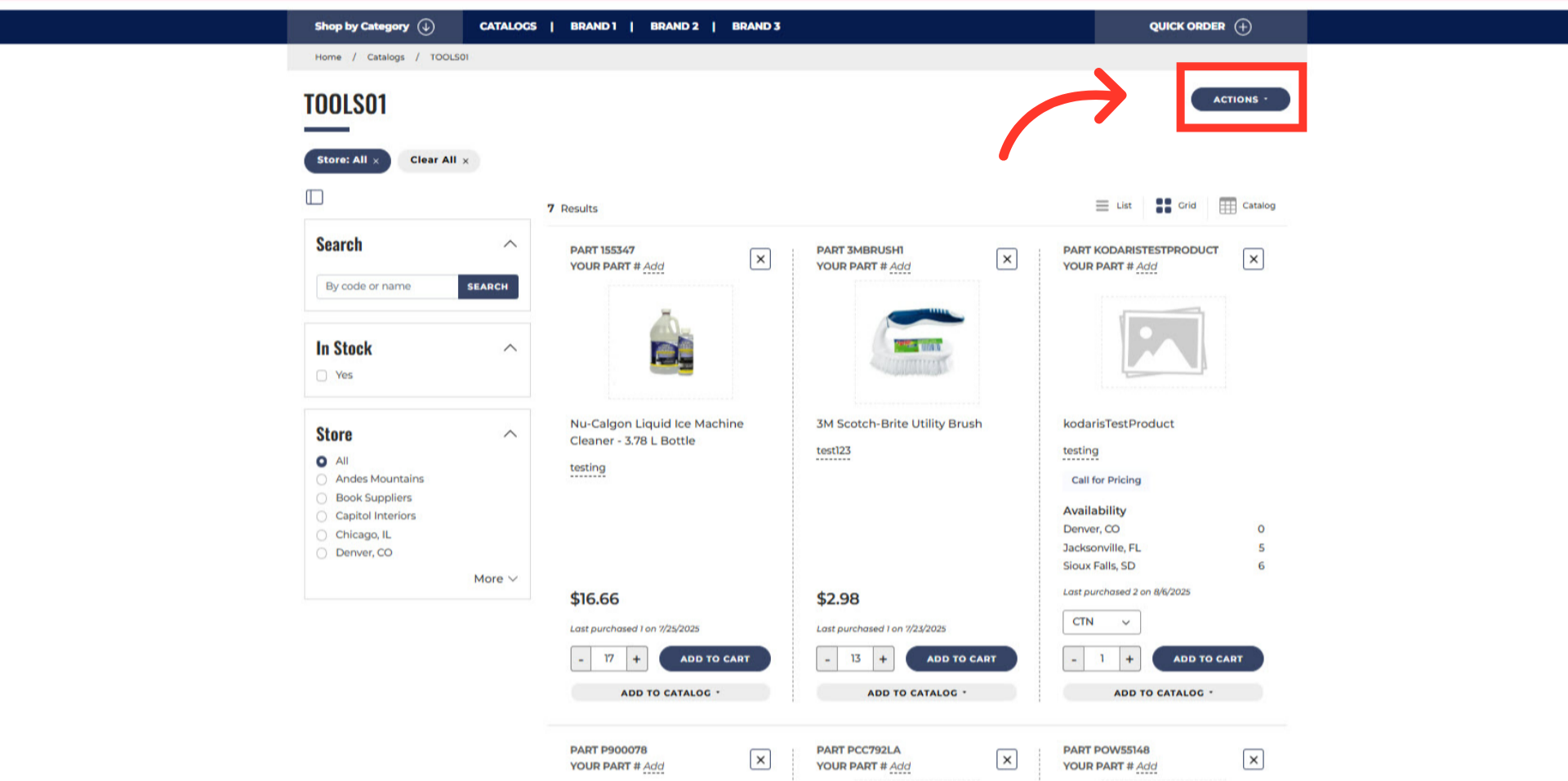 Once the catalog page is open, click the "ACTIONS" dropdown to view the options.