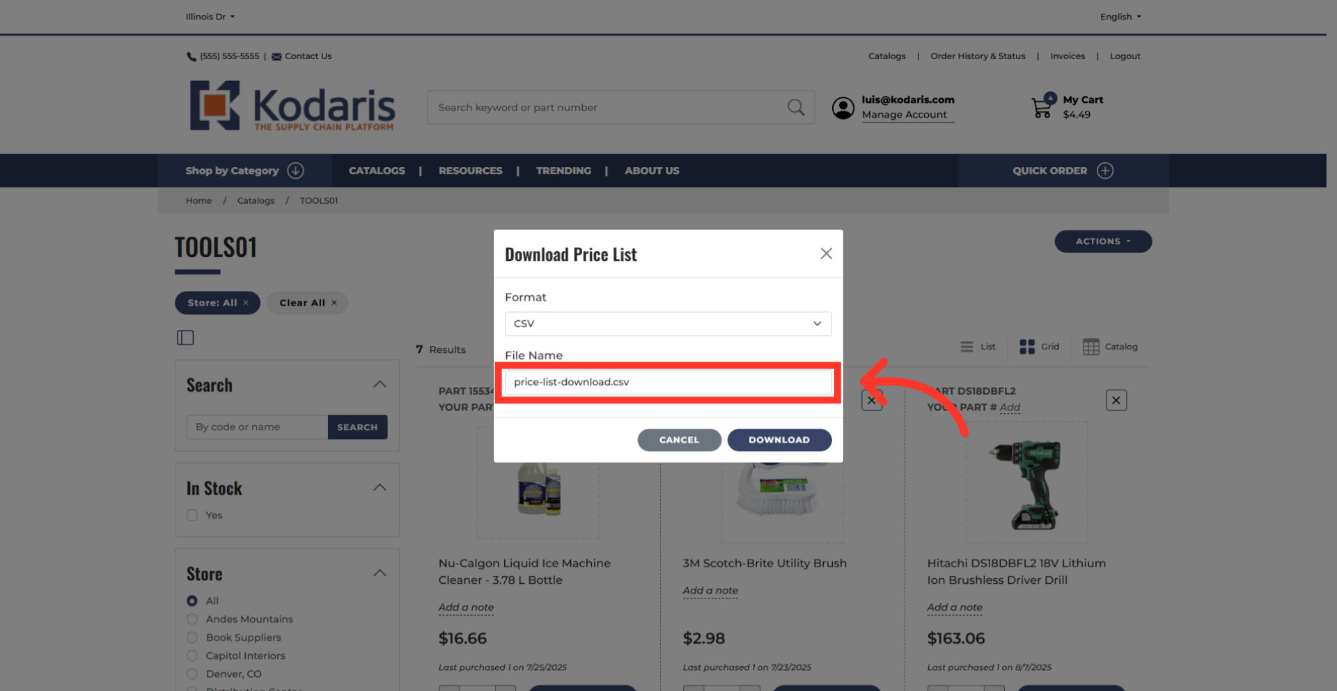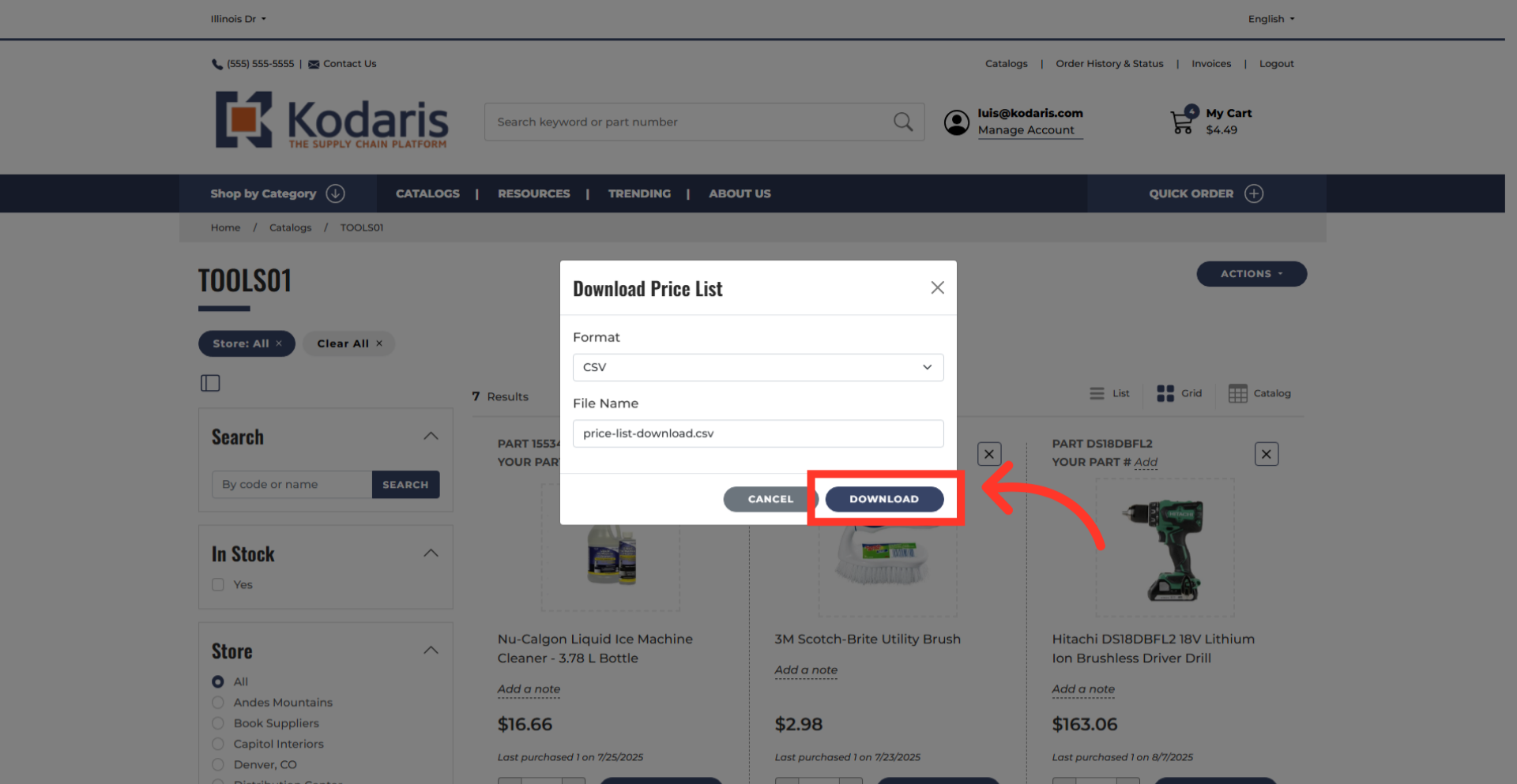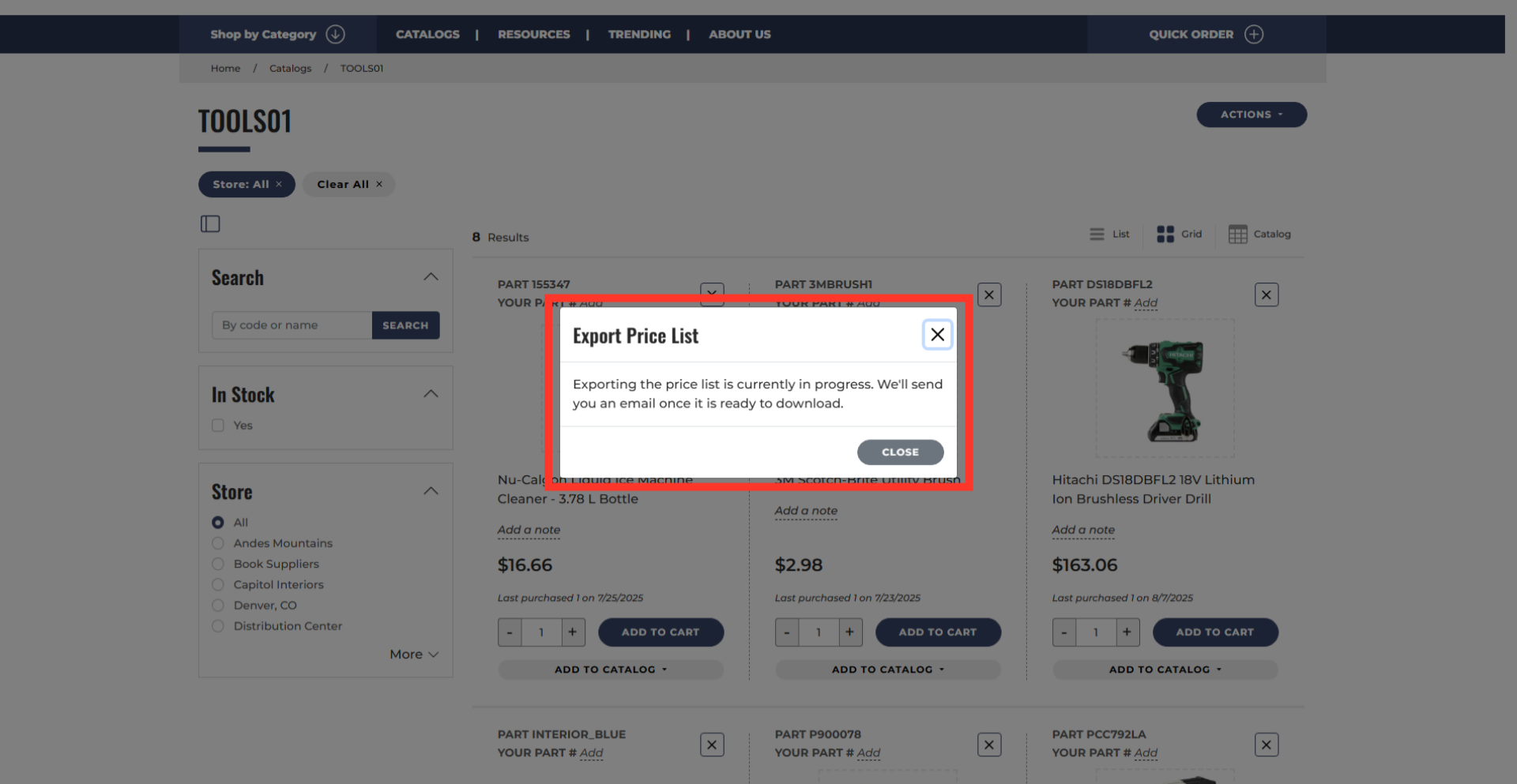 Then, click "Export Price List" to start the export.