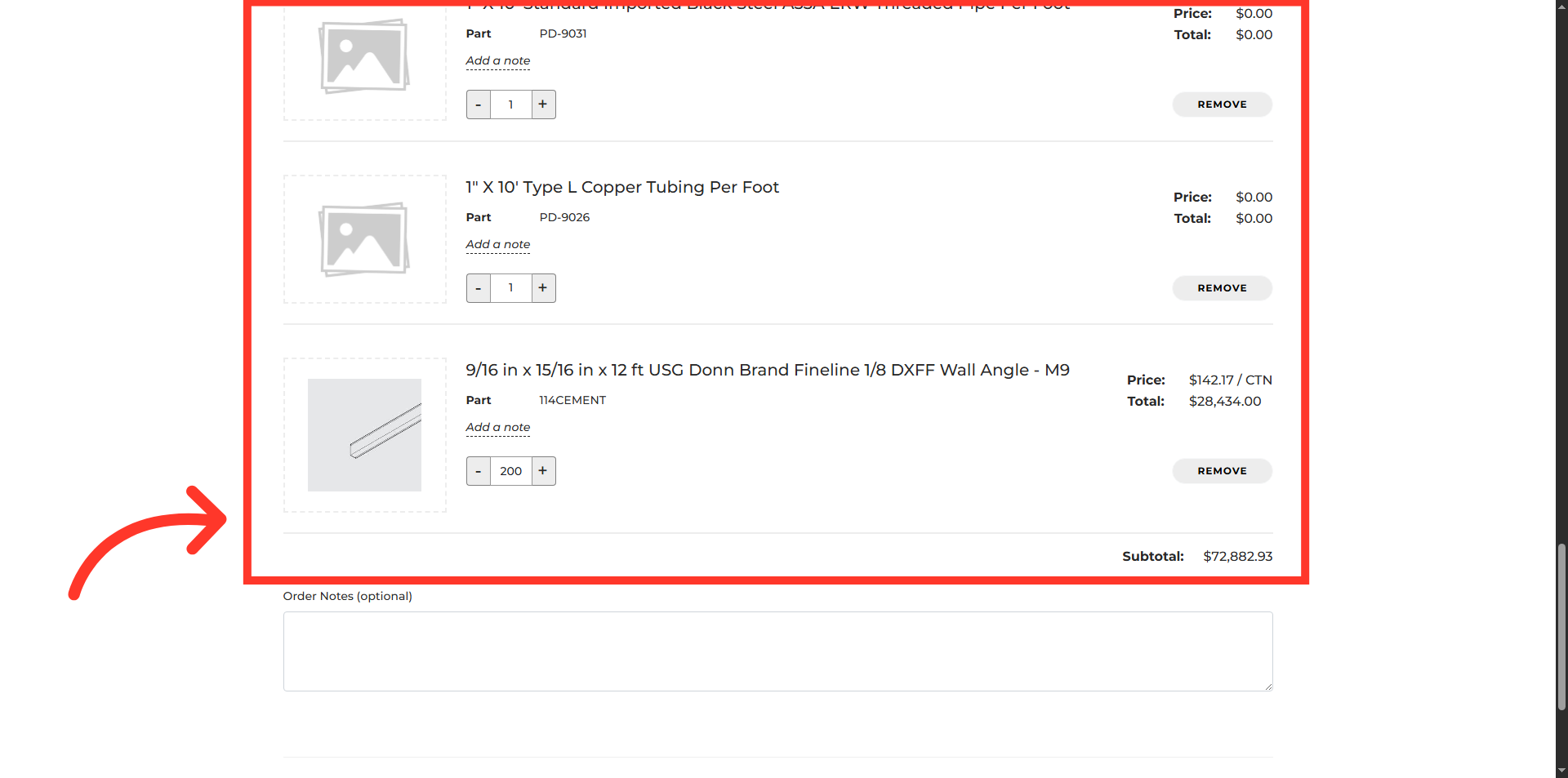 Review the shopping cart to verify the accuracy of all products and quantities.