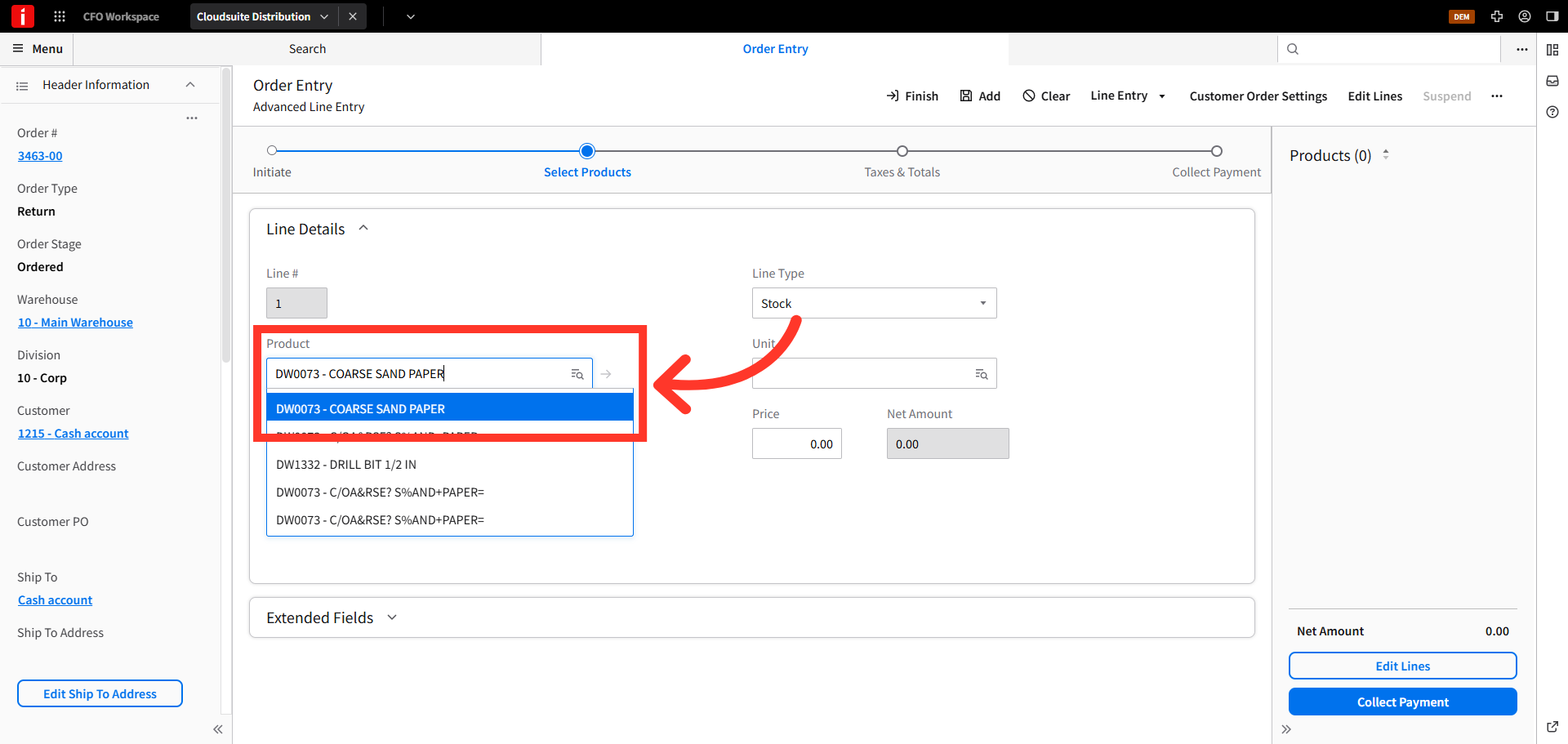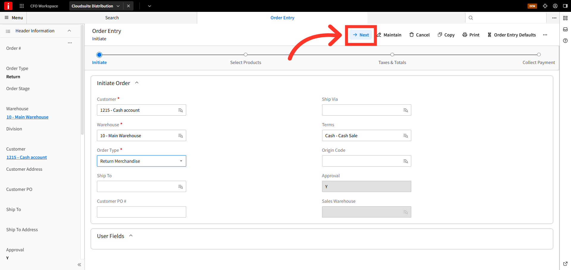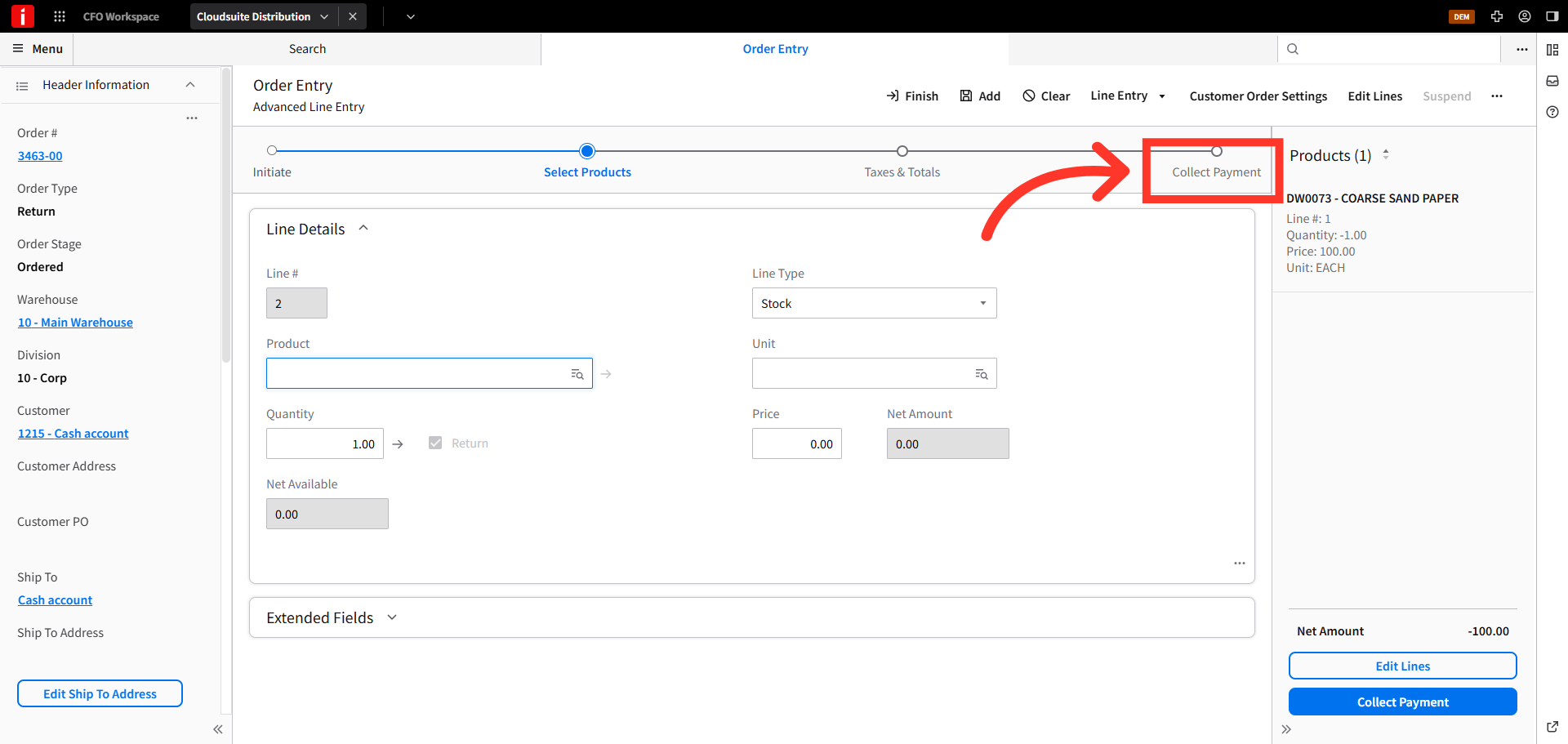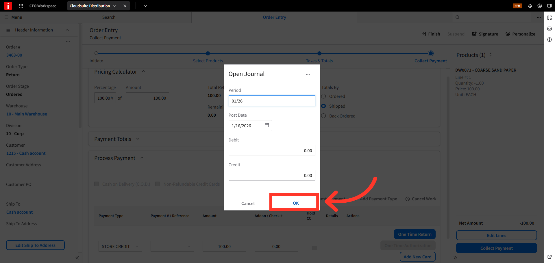 Store credits can be issued to walk-in, cash sale customers. To issue a store credit to cash sale customers in CSD, navigate to the order entry screen.