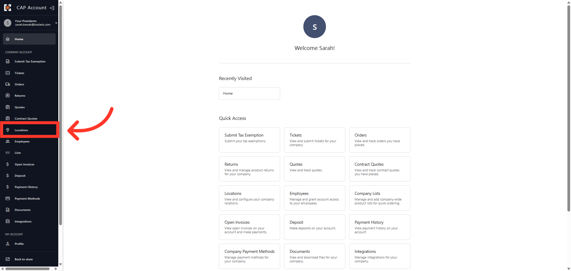 To easily view a quote that is linked to a location in the Customer Portal, first navigate to the "Locations" section in your Customer Portal.