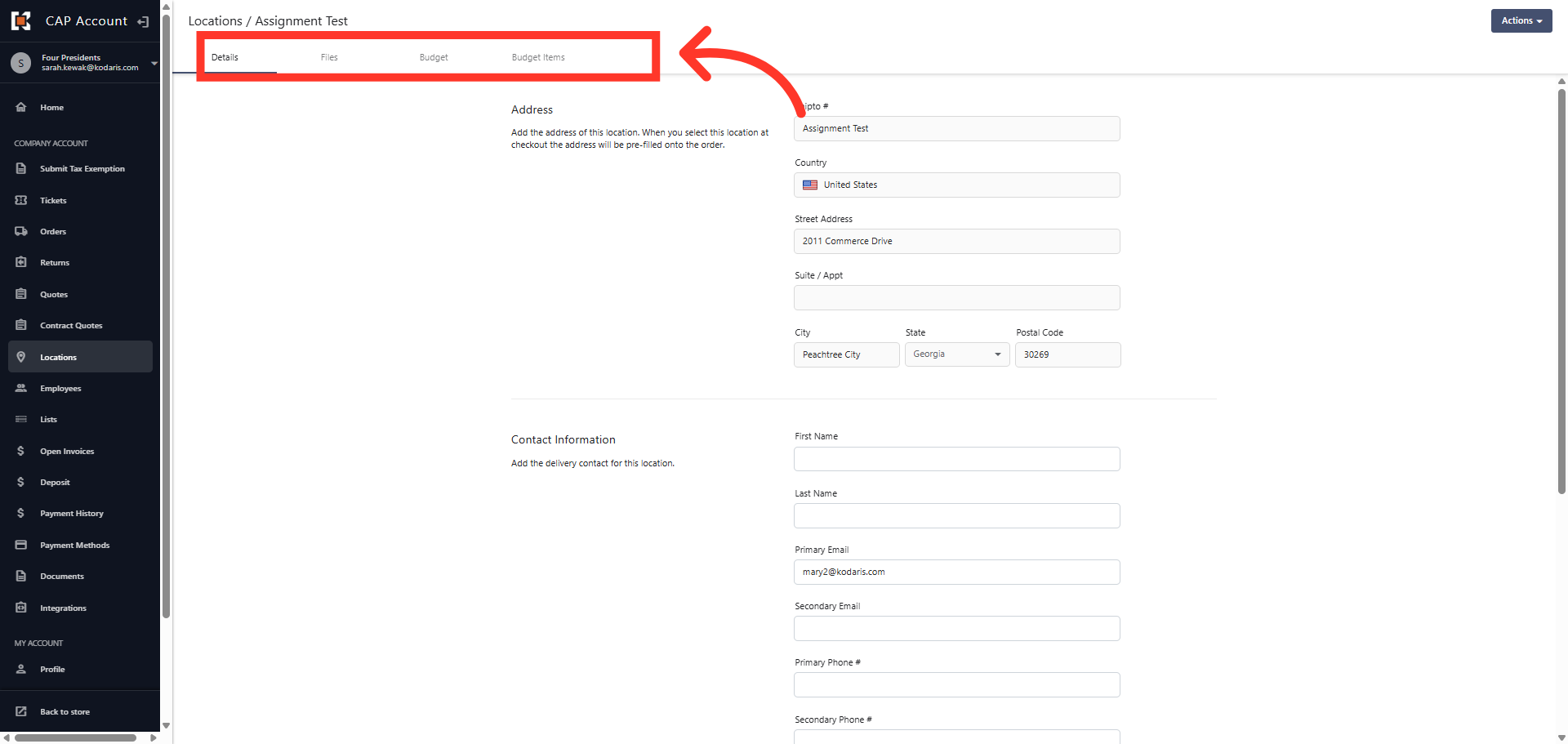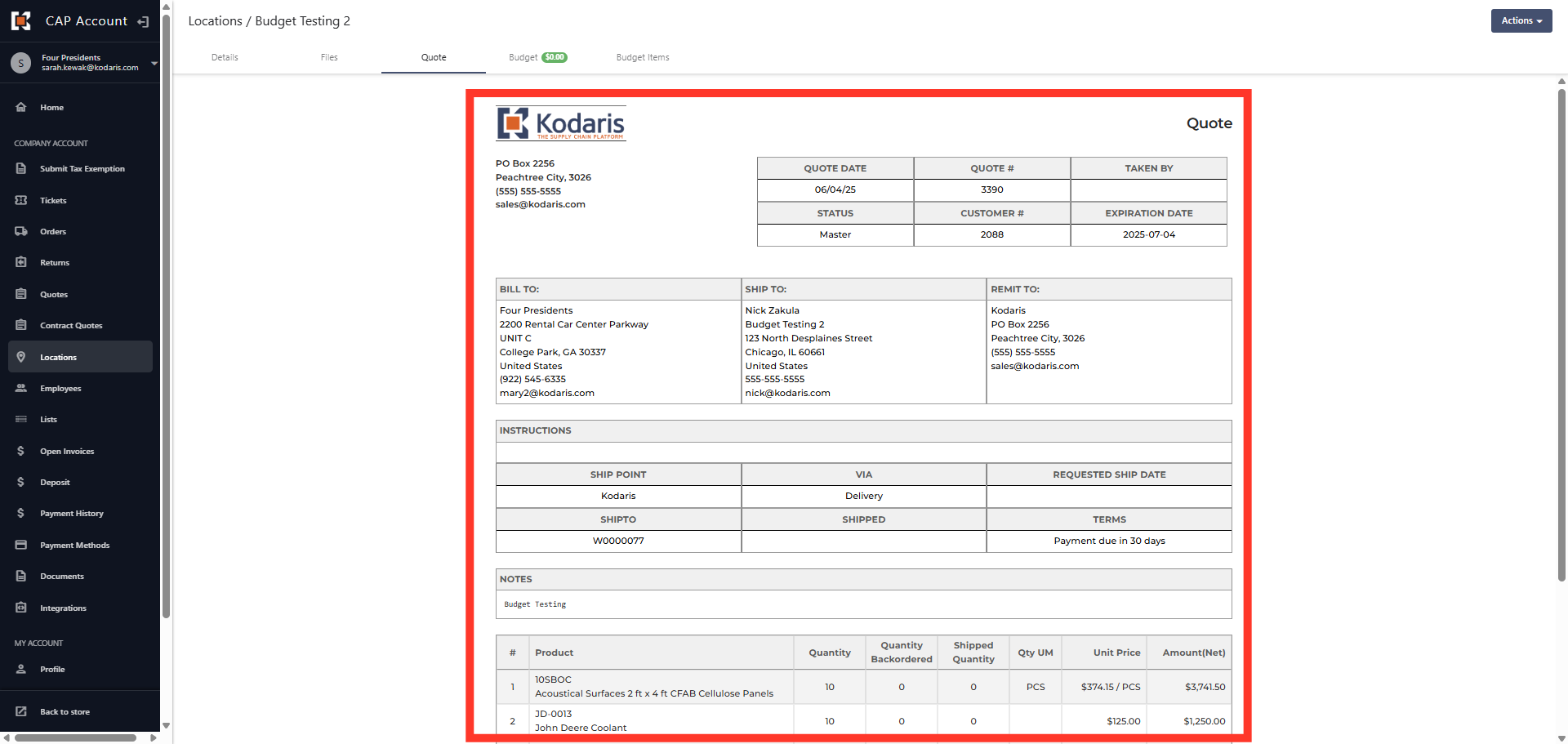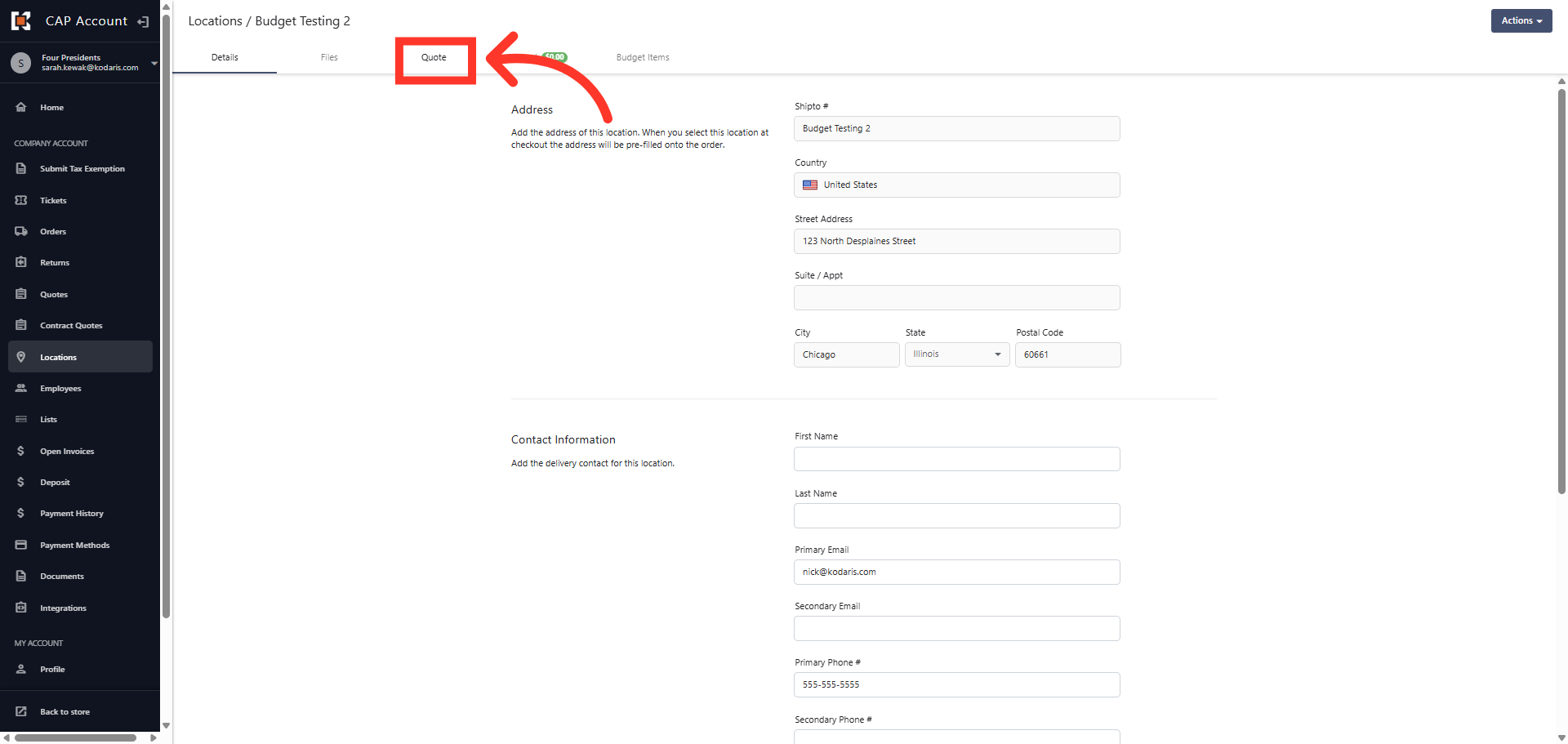If there is a quote associated with that location, a "Quote" tab will display at the top. To view the quote details, click the "Quote" tab.