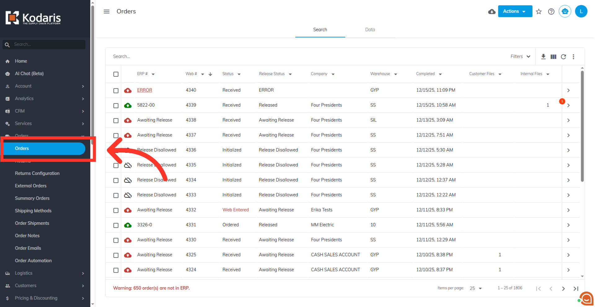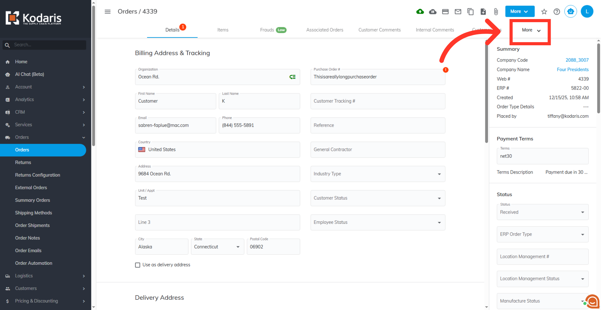To check if the code is working, navigate to "Orders" screen. In order to access and update "Orders", you will need to be set up either as an "administrator" or a "superuser", or have the role: "orderEdit".