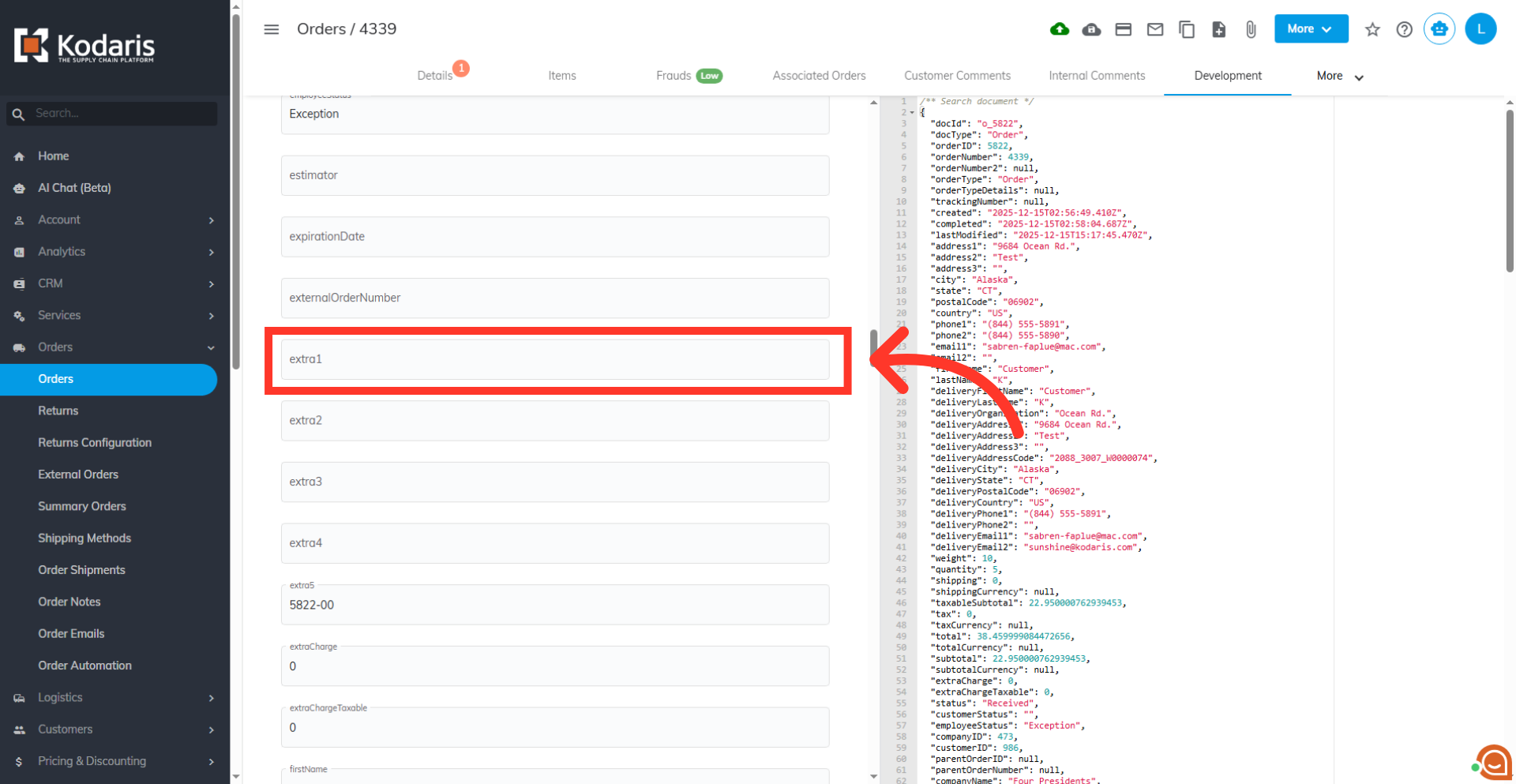 Scroll down to locate the "extra1" field. Any data you input in this field will go through the conditional code block created earlier.