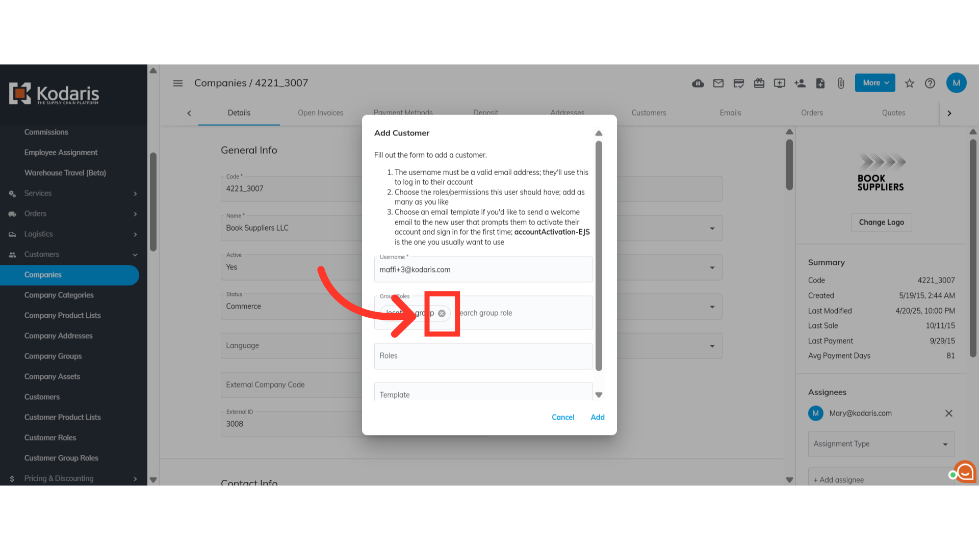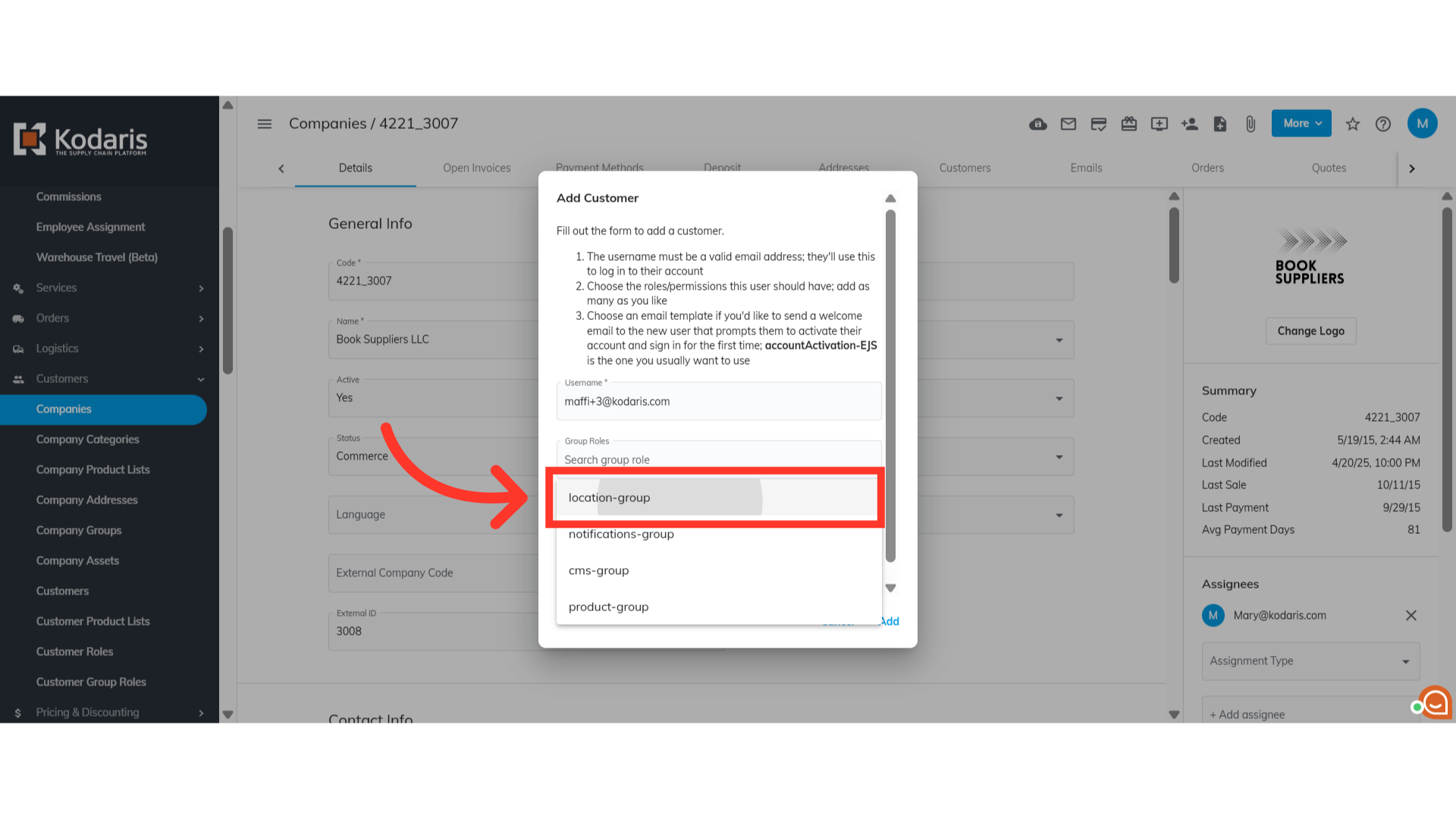 Next, you need to select a group role from the list. Note that you can assign multiple group roles to the customer.