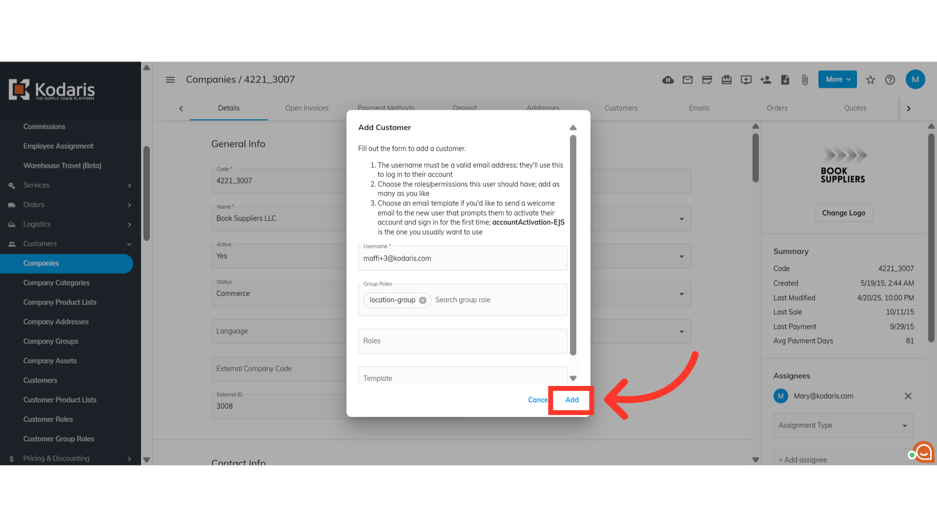 Now, click "Add" to add the new customer.