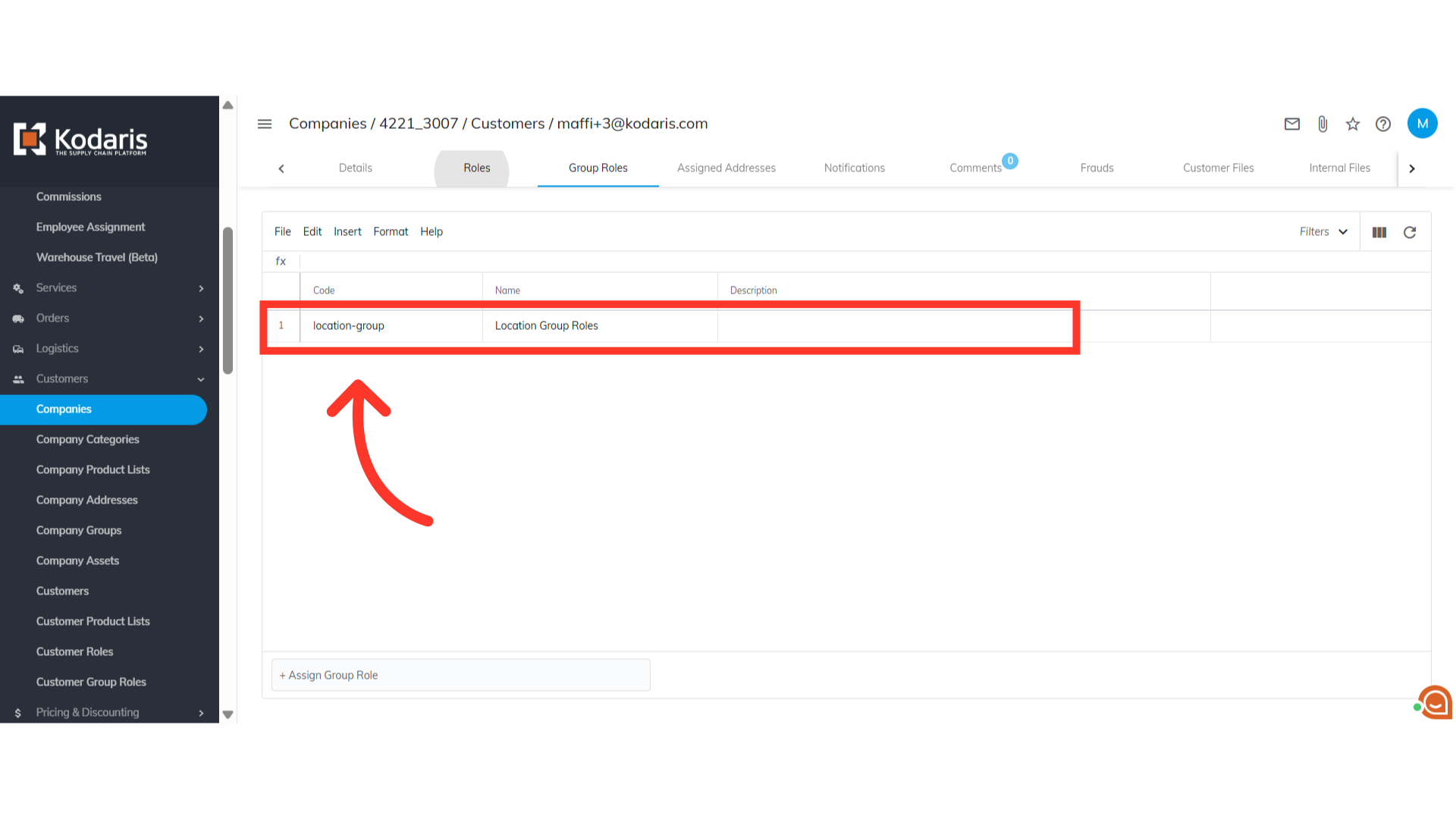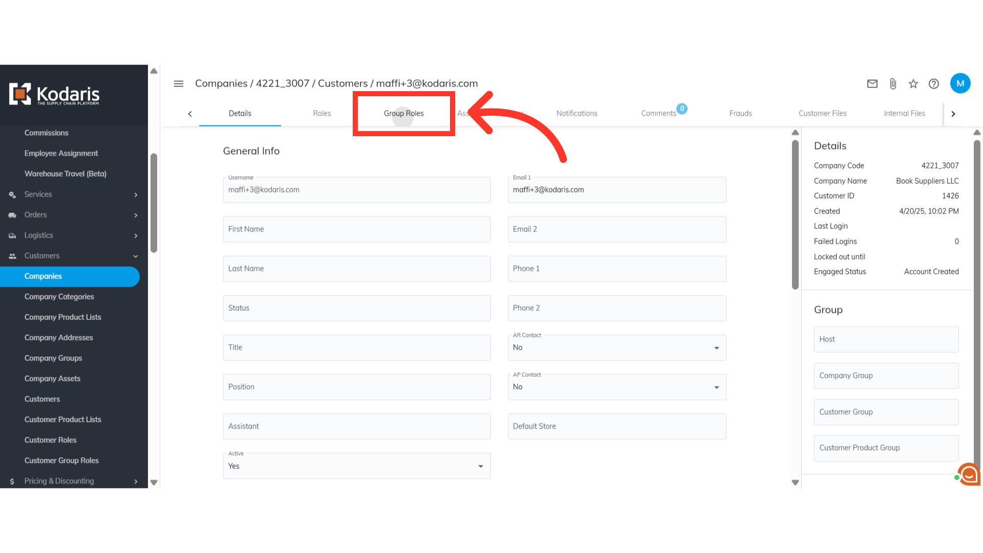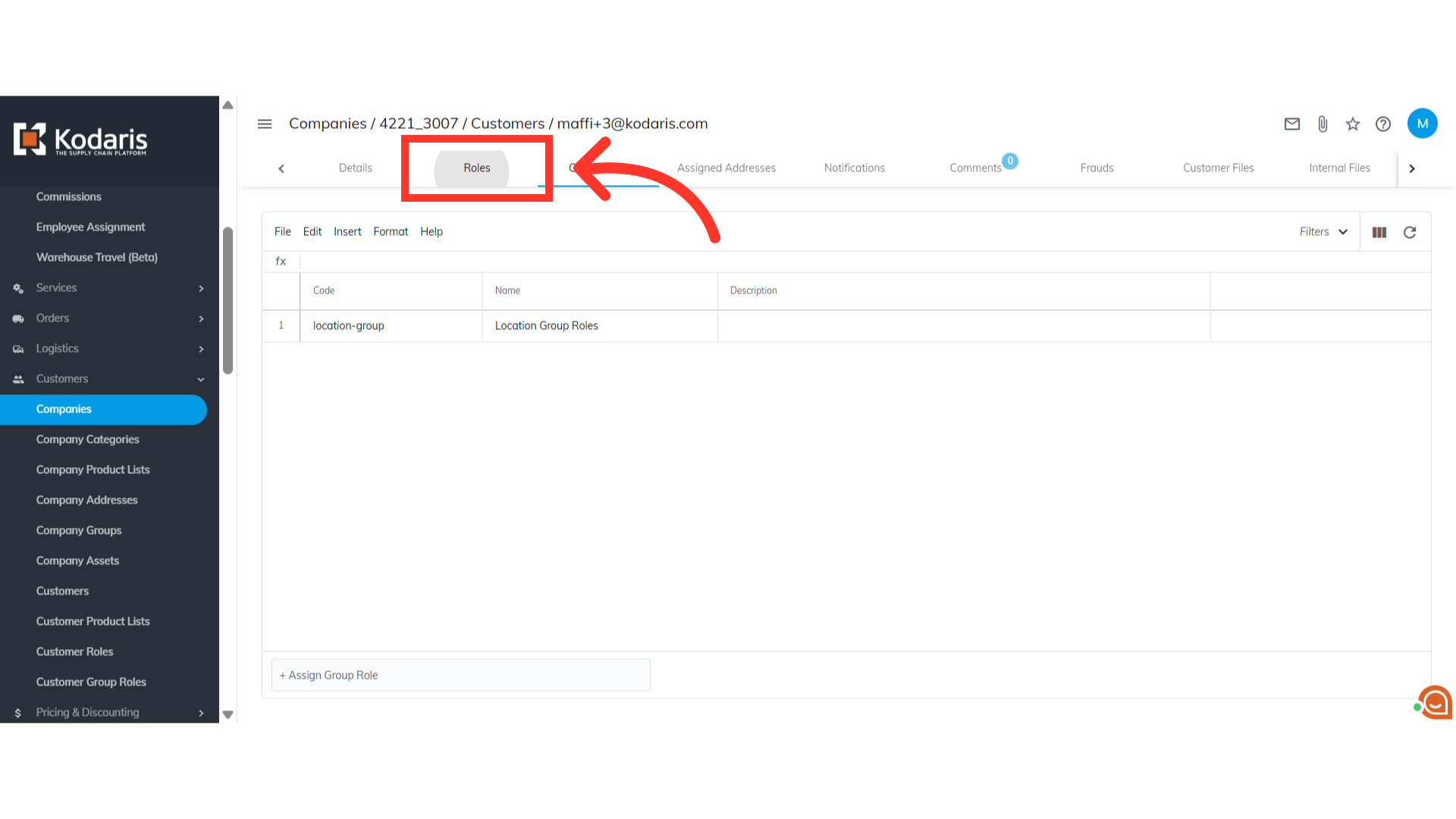To check if the group role is assigned to the customer, go to the "Group Roles" tab.