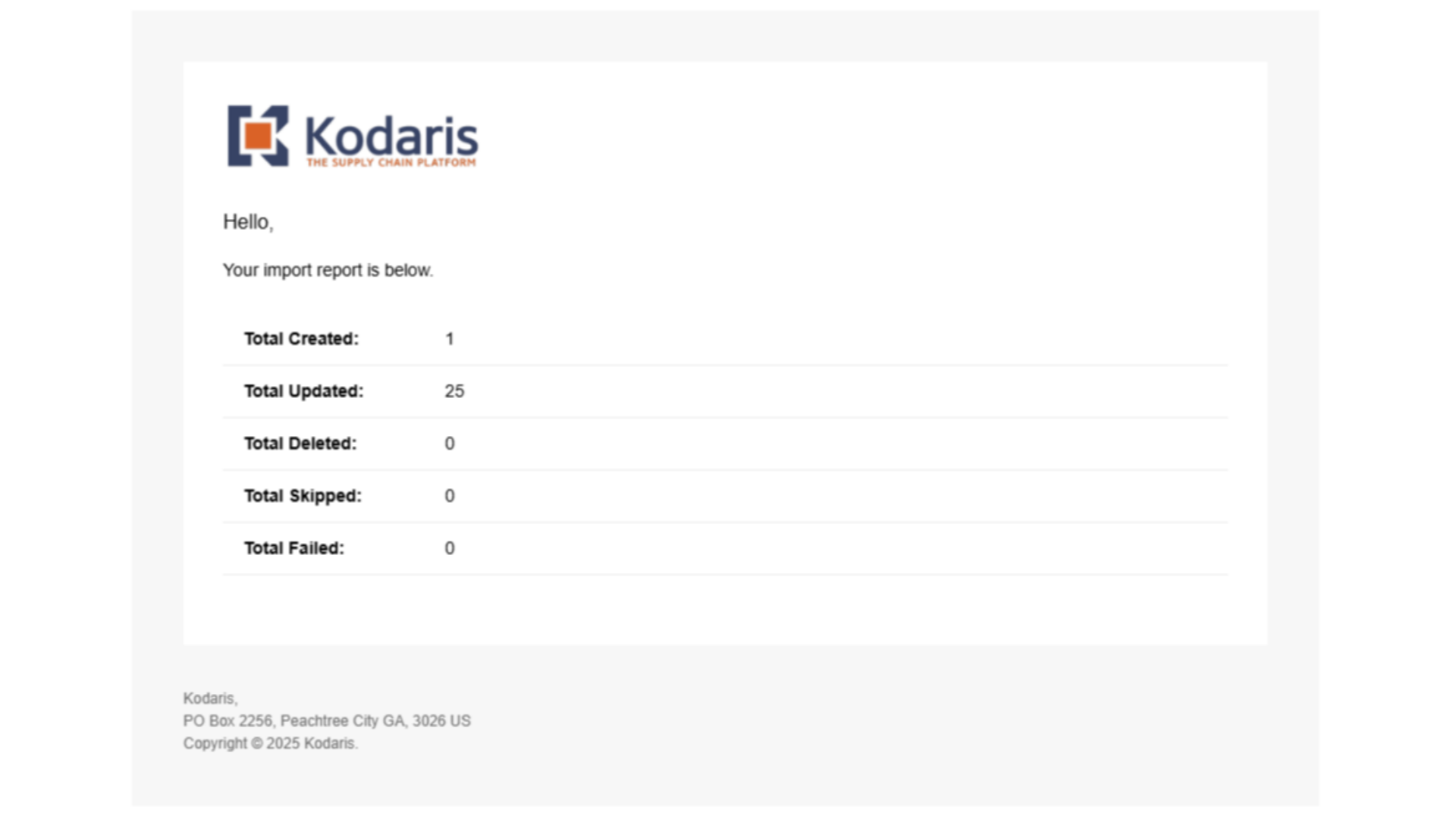 Once the import is complete, you will receive an email with the report of your import.