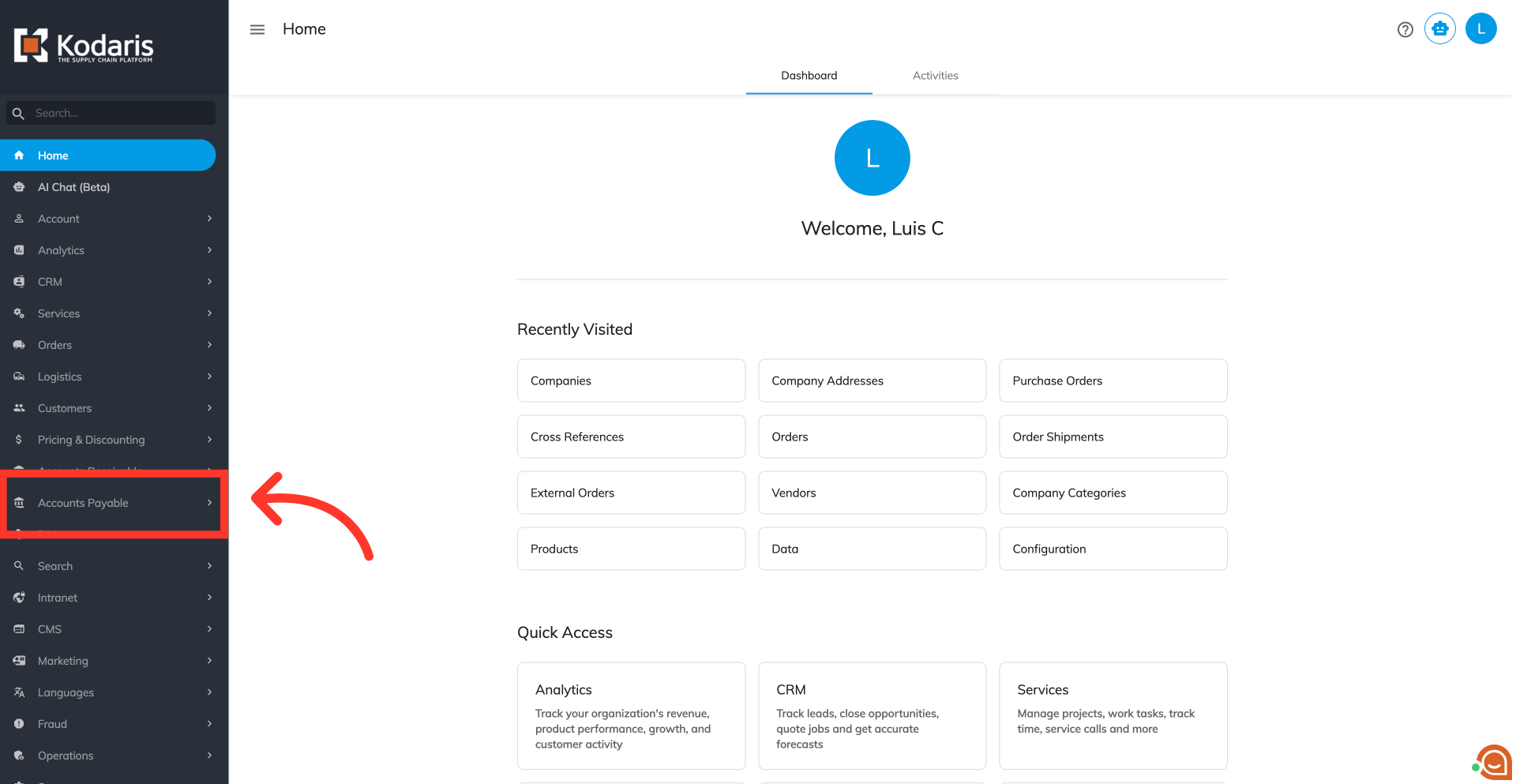 To export vendor data, navigate to the "Accounts Payable" section in the Operations Portal.