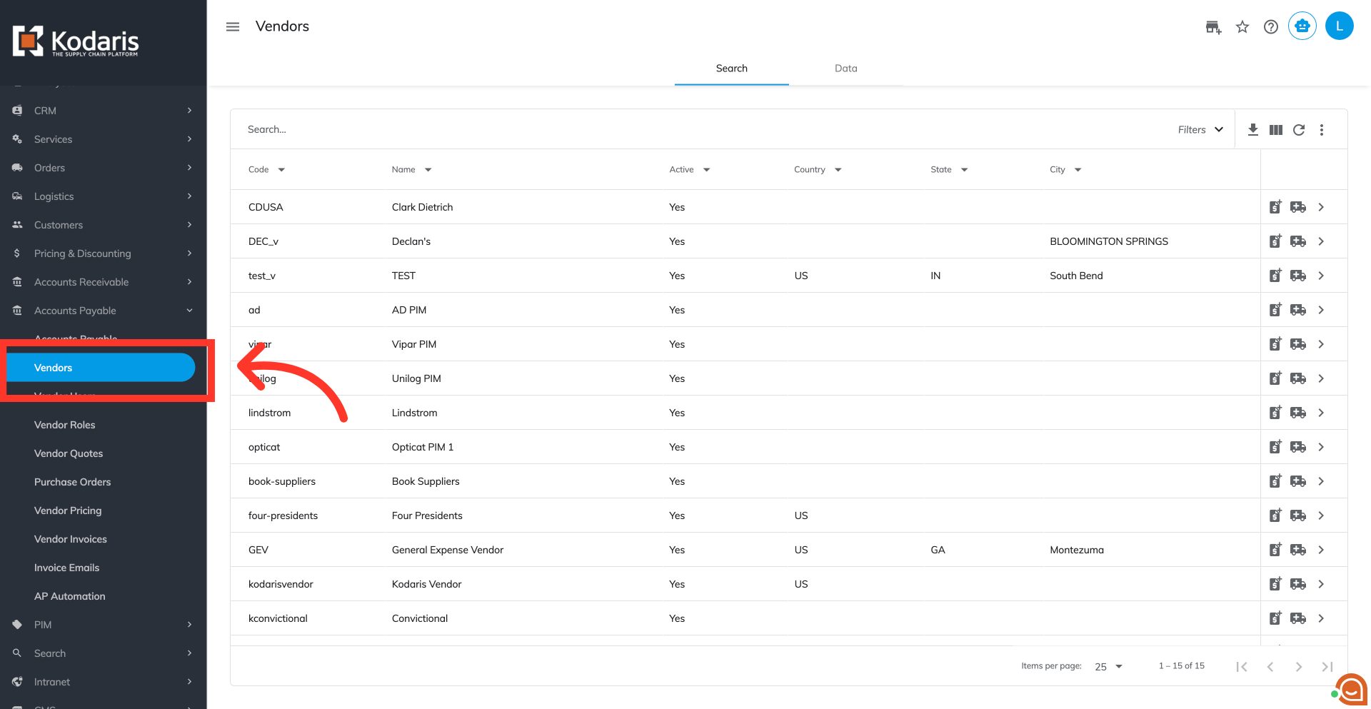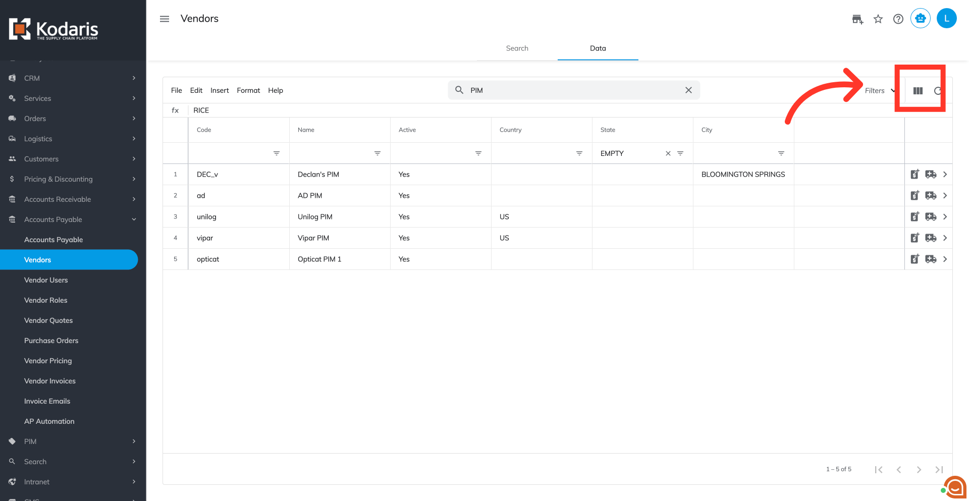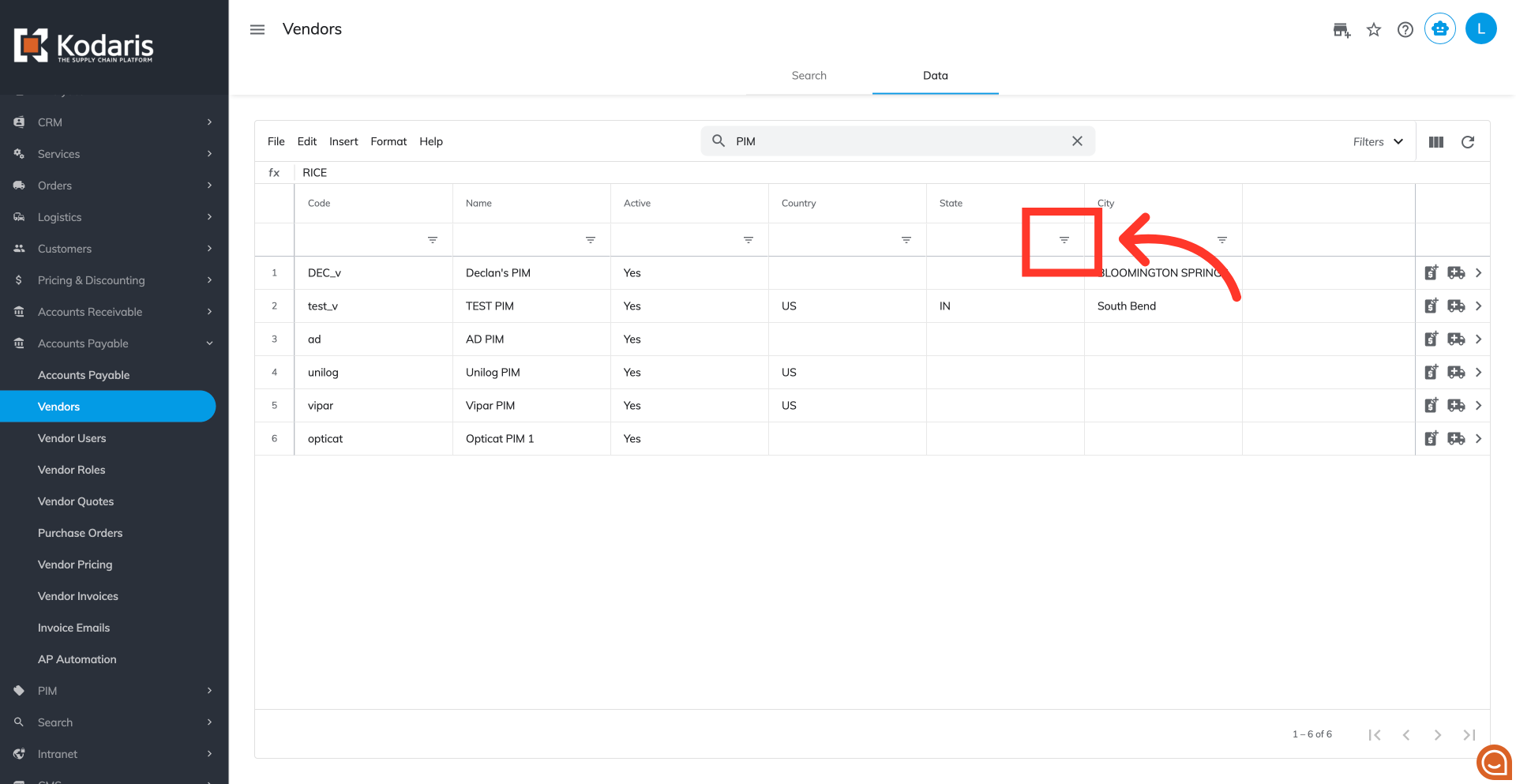 You can also use column filters to further refine your vendors list.
