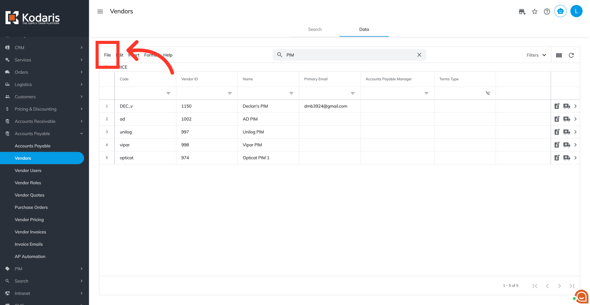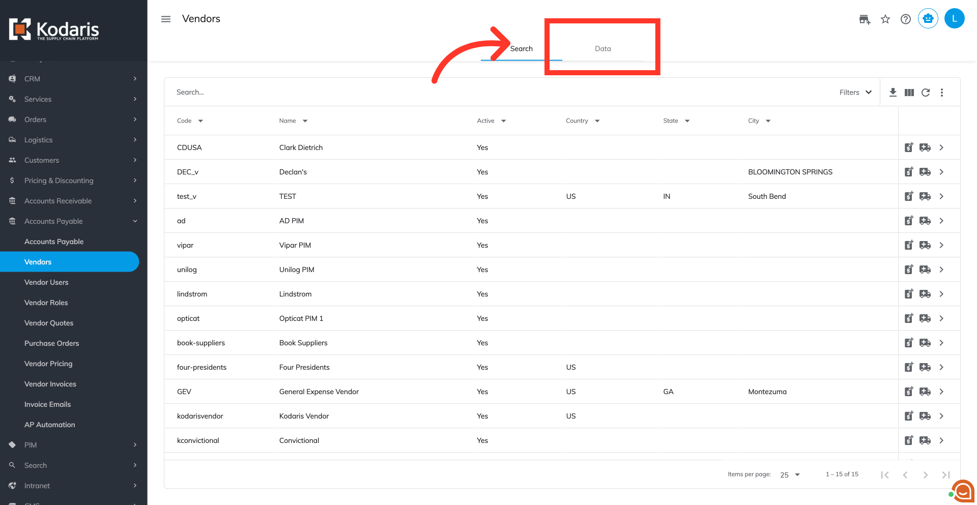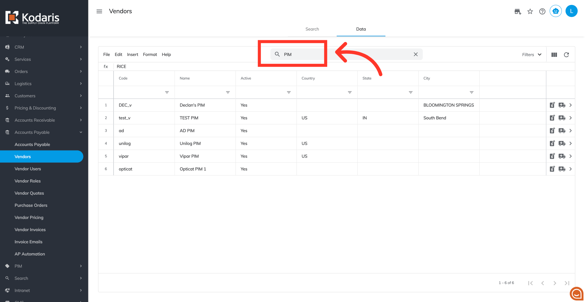 You can also use column filters to further refine your vendors list.