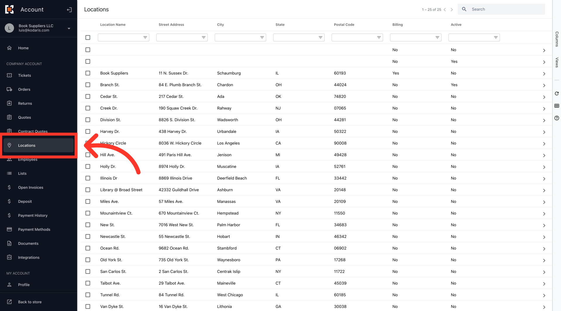 To display or hide ship-to's on the commerce site, log in to your Customer Portal and navigate to the "Locations" screen. In order to access "Locations" you will need to have the role of "Company Admin" or "Edit Assigned Locations".
