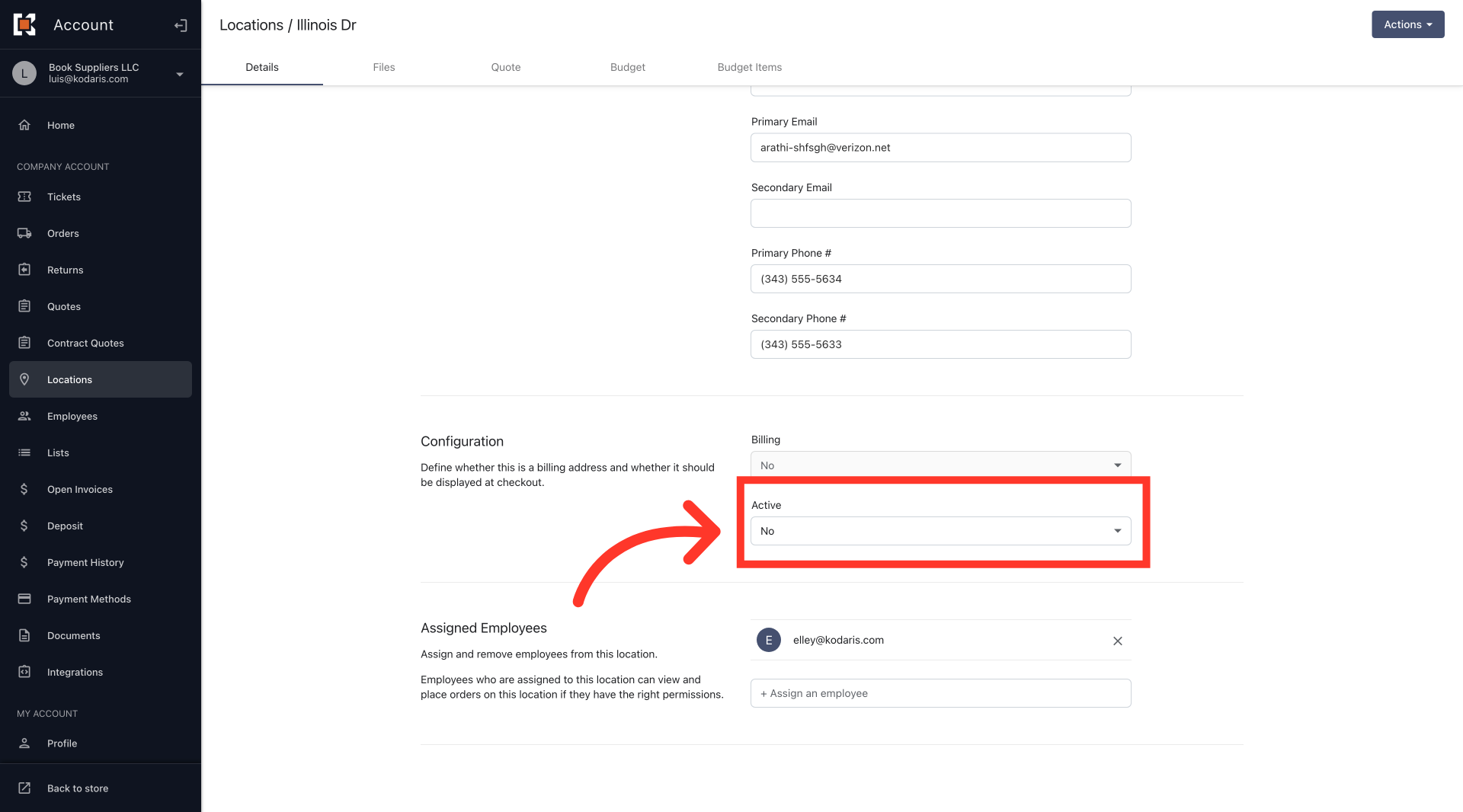 Scroll down to the "Configuration" section of the page where you will find the "Active" dropdown.