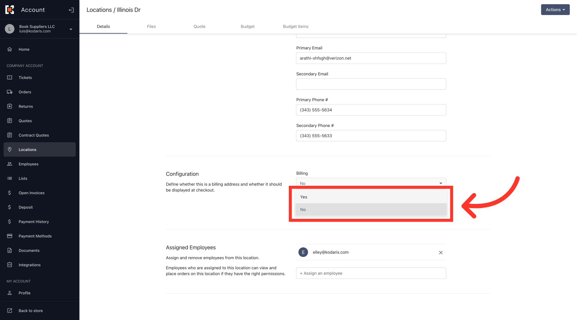 Select from the options. Change the value to "Yes" to make the location visible and select "No" to hide. The setting will automatically update once the selection has been made.