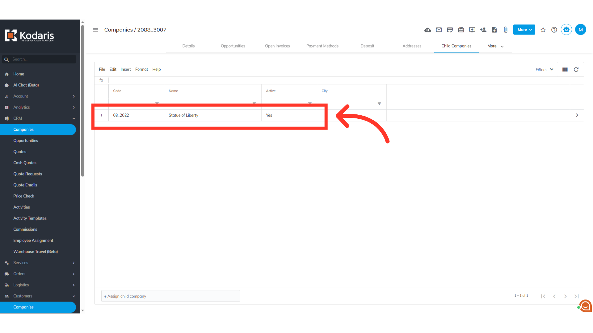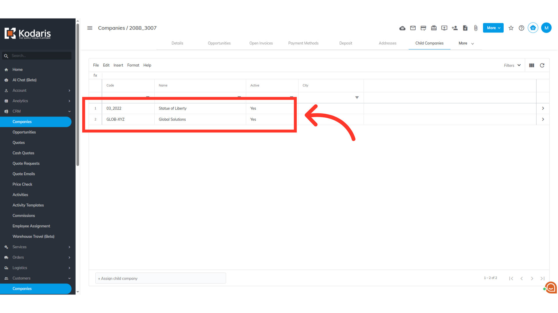 Repeat the process to assign multiple child companies. All the child companies for the parent account will be added to the list.