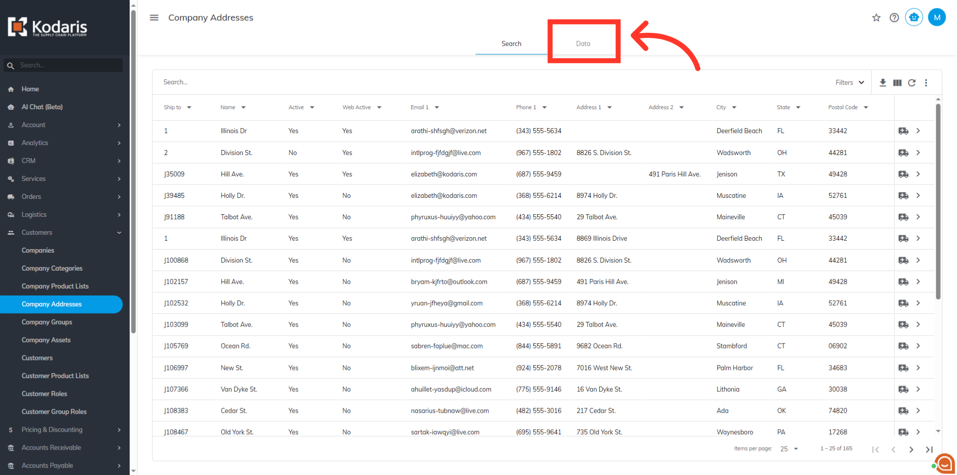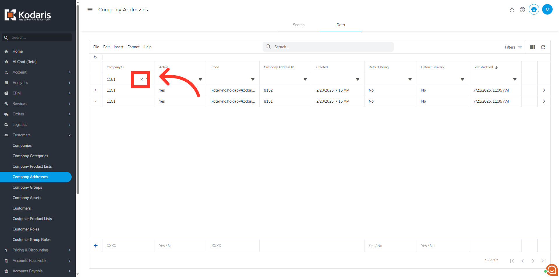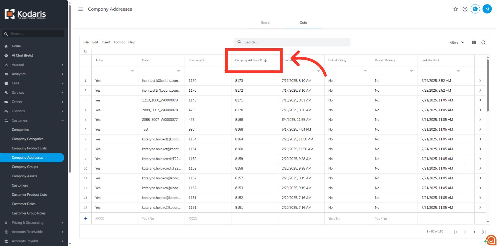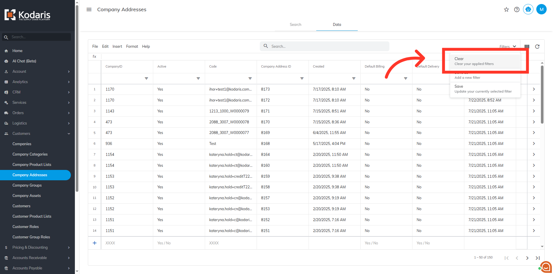 To sort and filter data for company addresses, navigate to the "Customers" section in the Operations Portal.