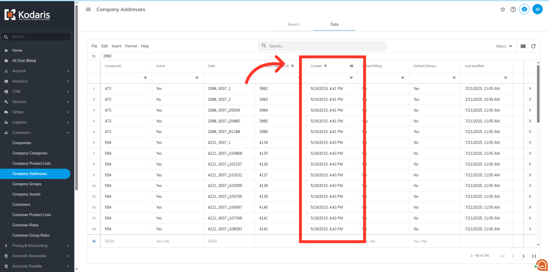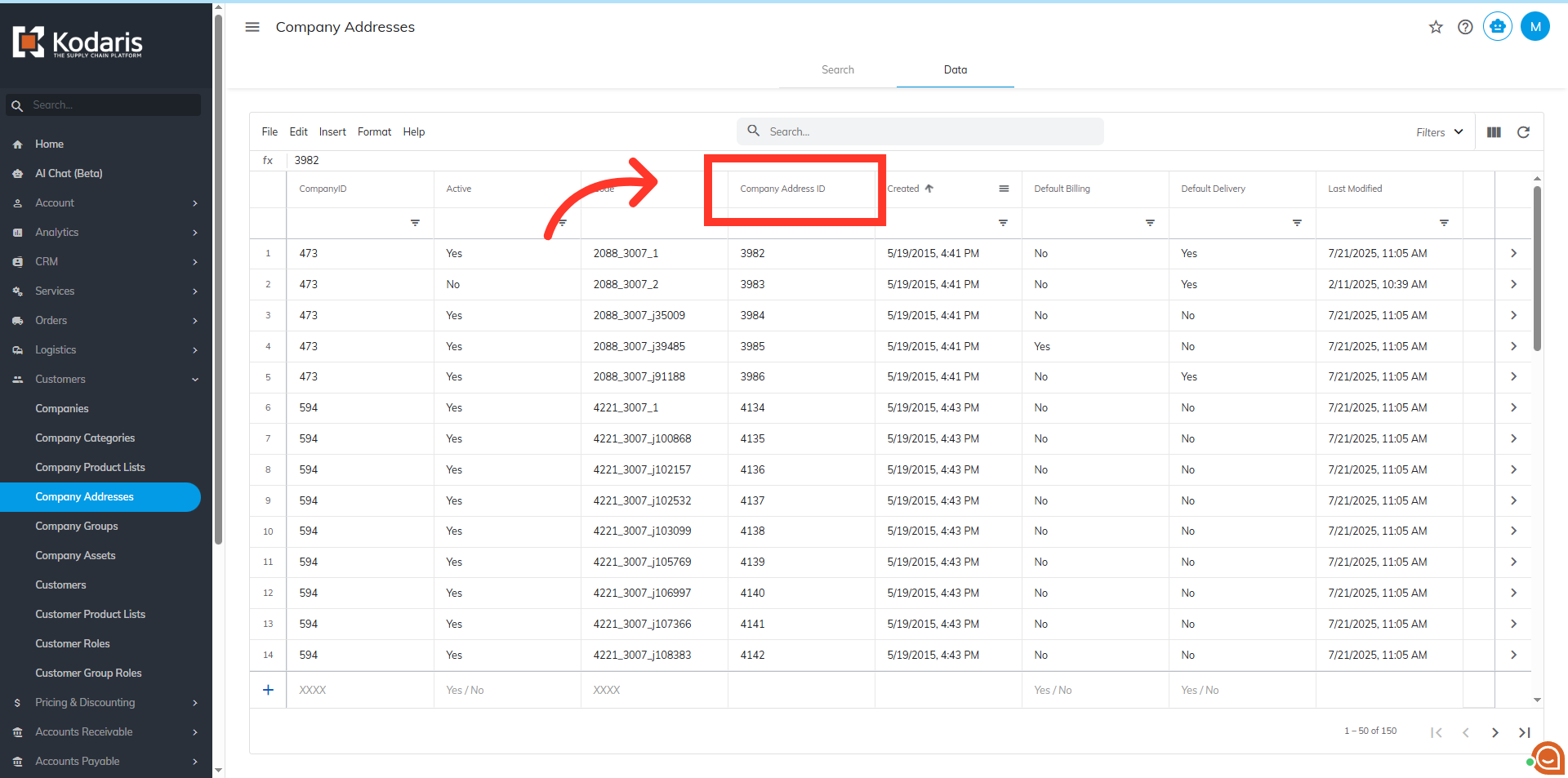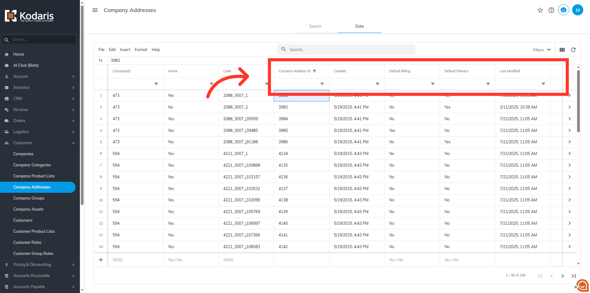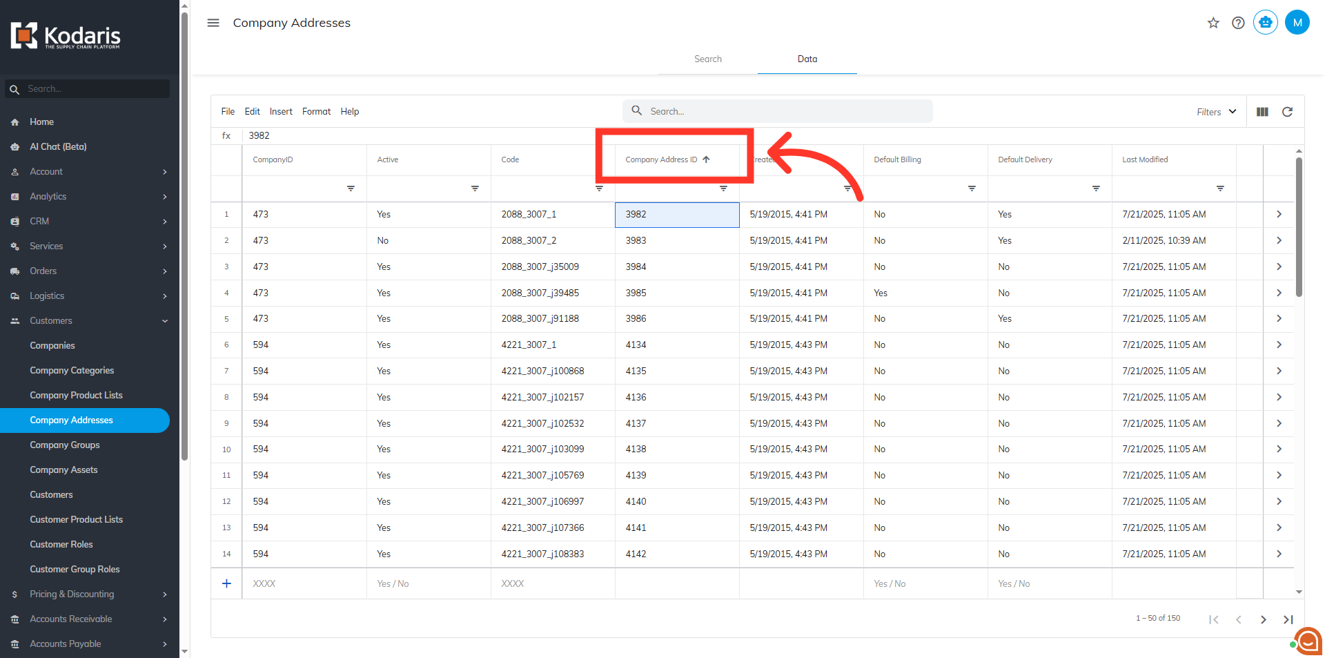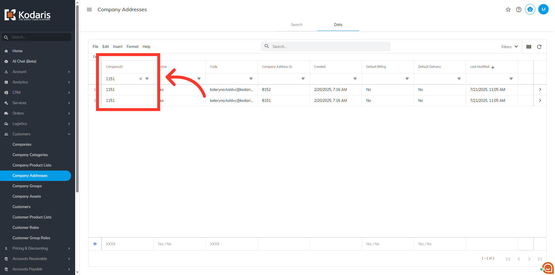 To sort and filter data for company addresses, navigate to the "Customers" section in the Operations Portal.