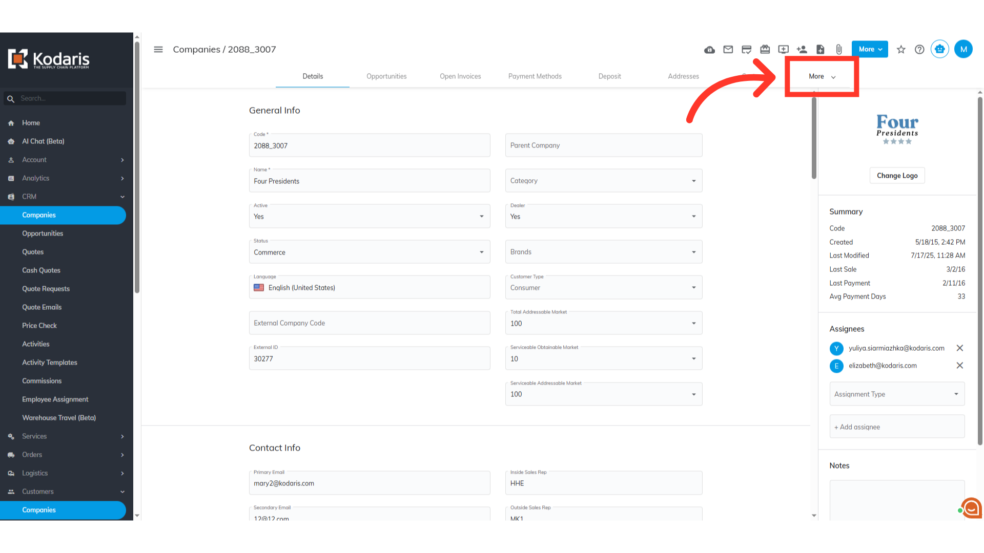 Then, click on the more details icon to view company details.