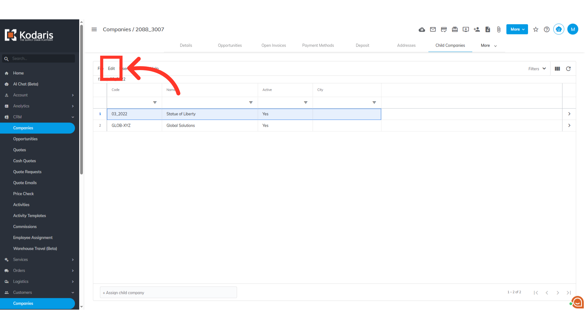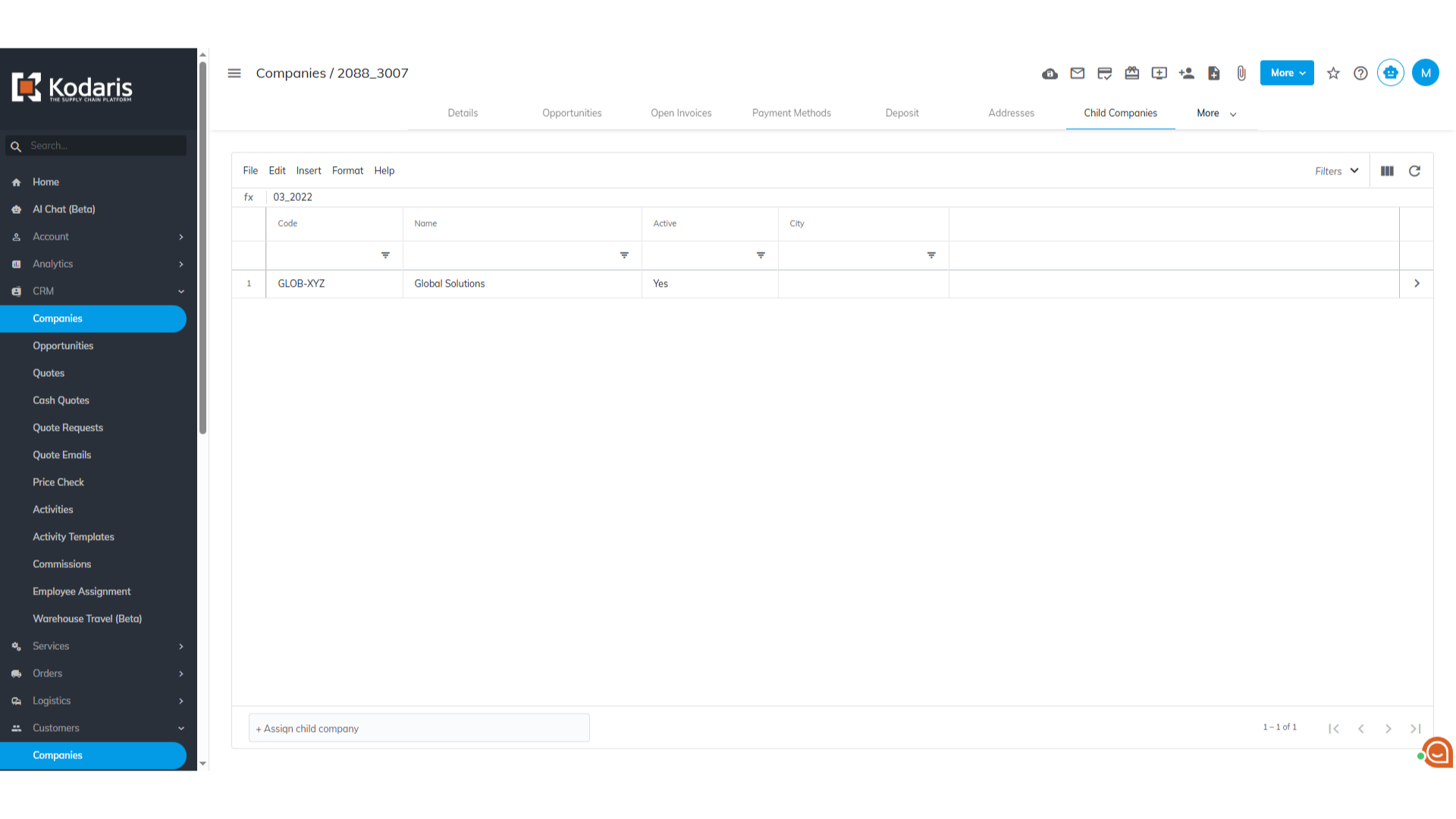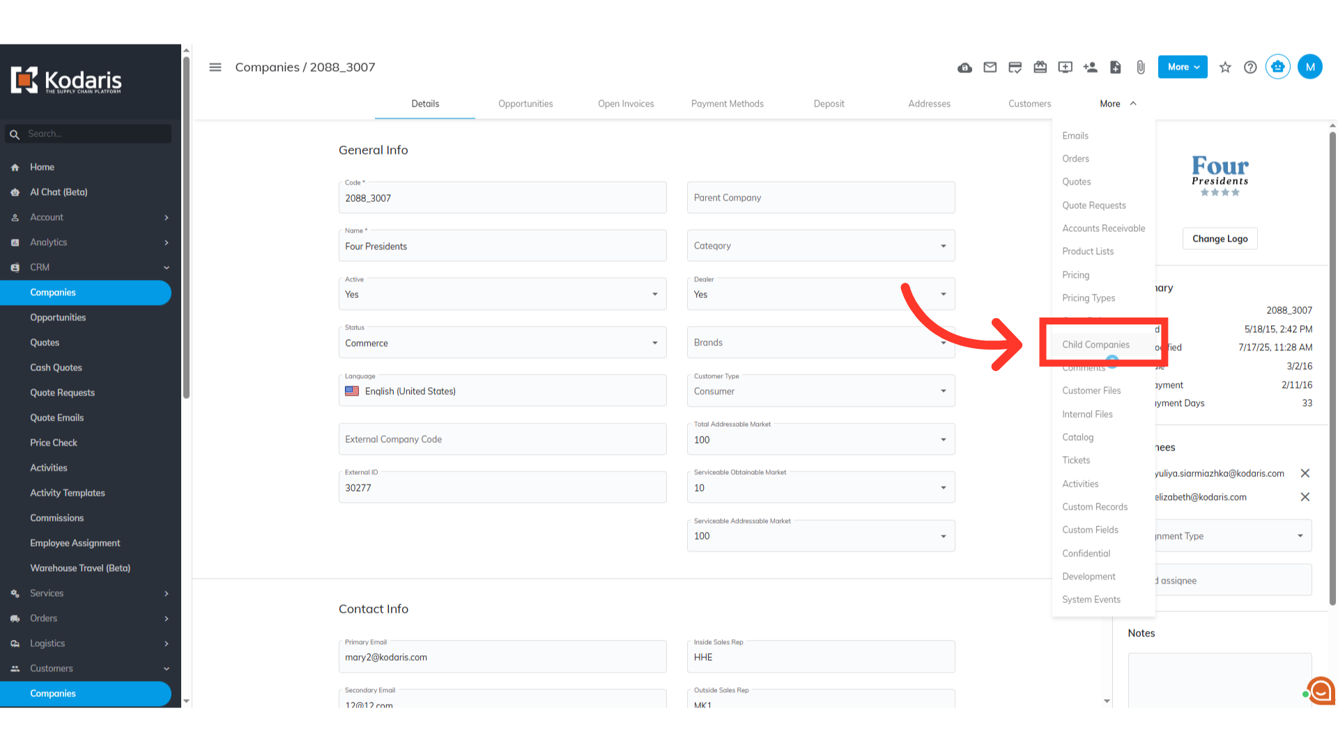 Select "Child Companies".