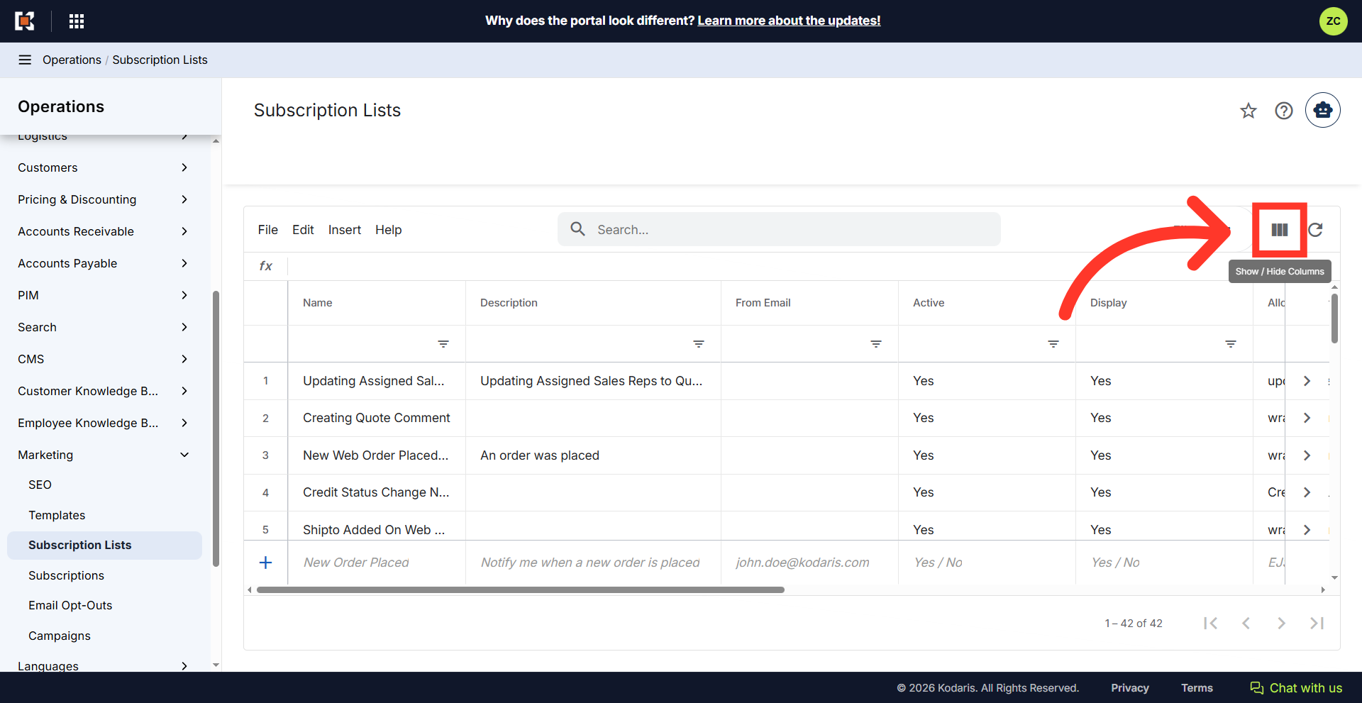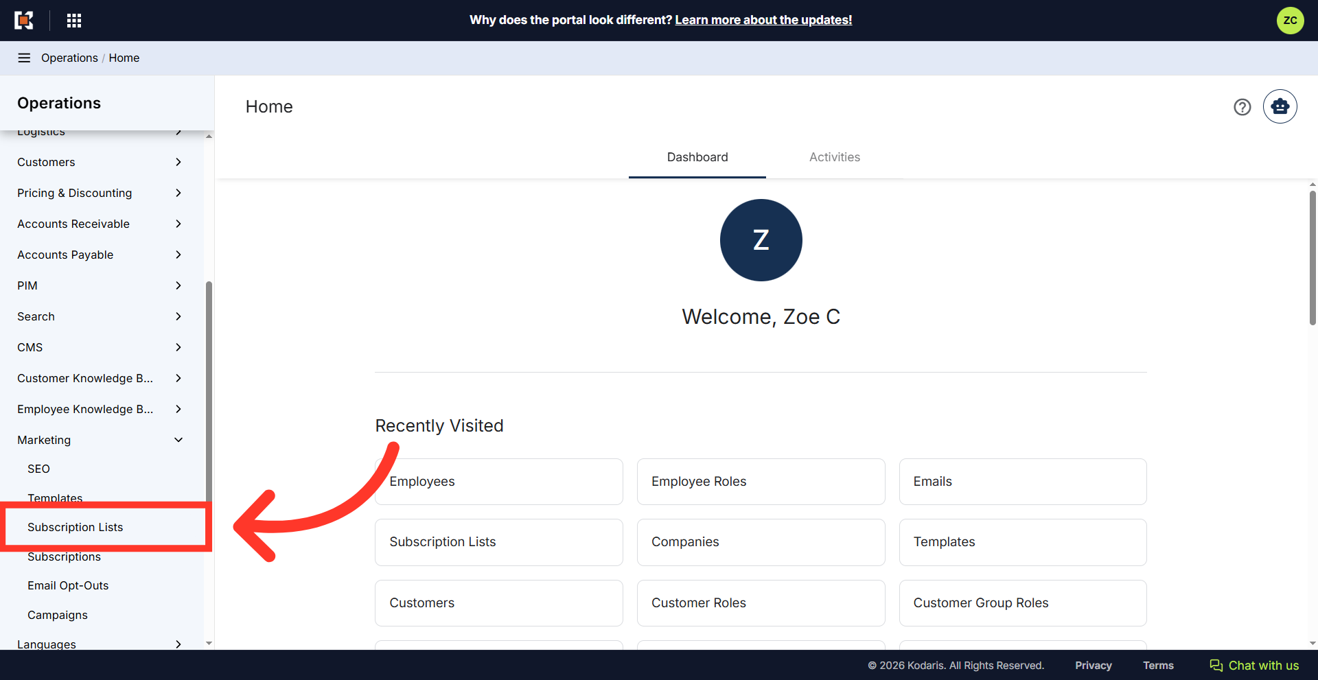 Subscription Lists can be used to create group contacts that you would like to send email communications to. They can also be used for setting up employee and customer notifications. To set up a subscription list, navigate to "Marketing" section in the Operations Portal.