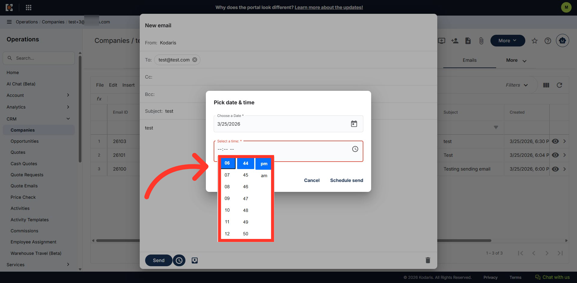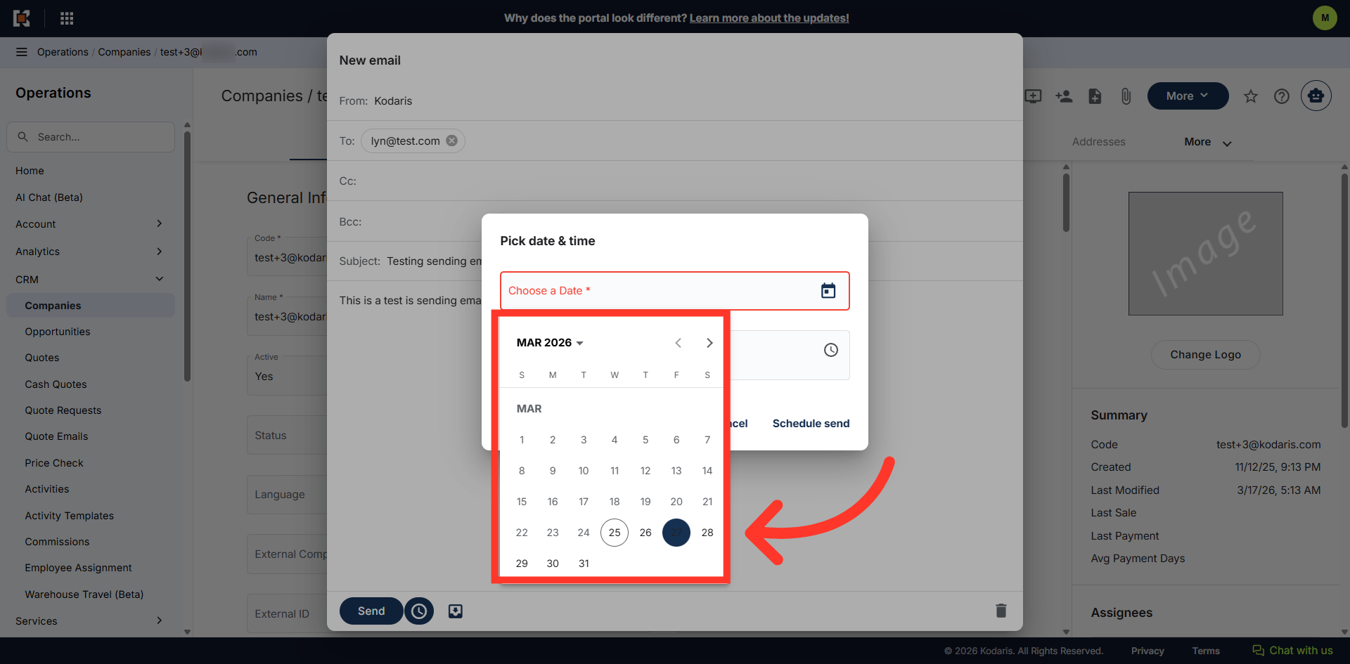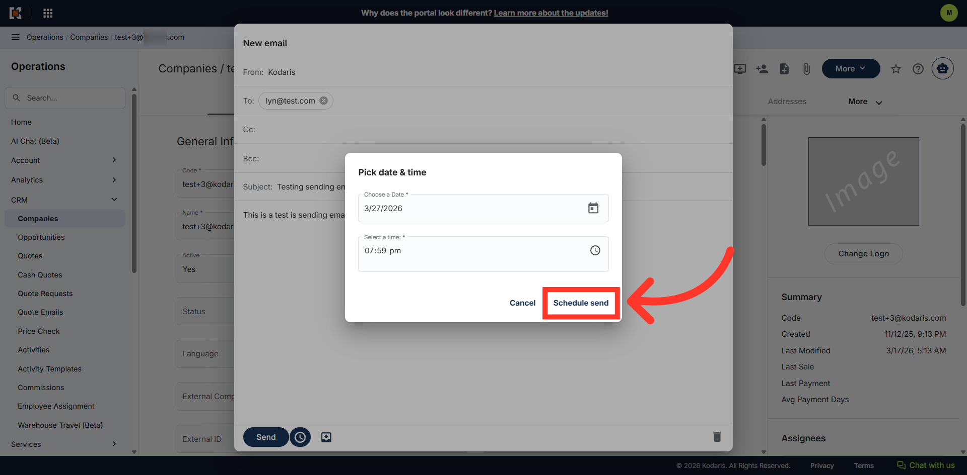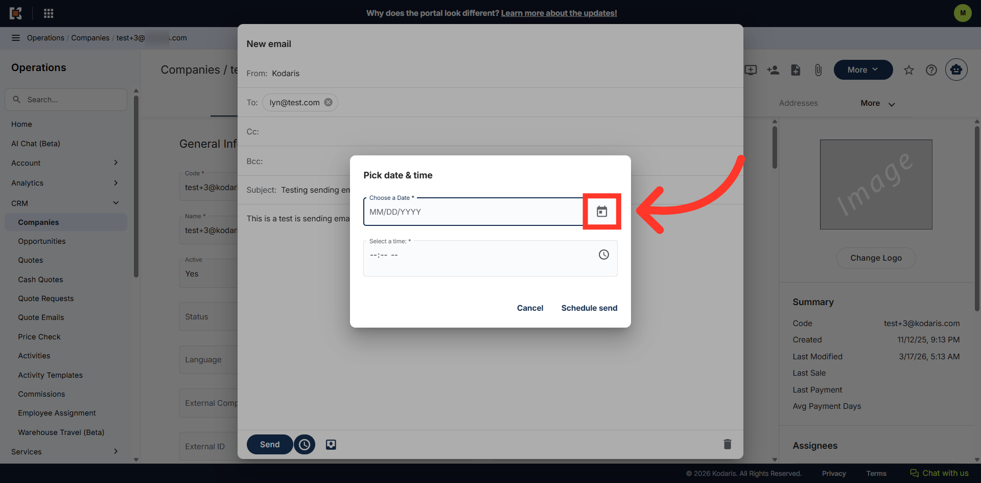You also have the option to schedule the email to be sent on a different date and/or time, select the "Schedule send" icon to schedule your email.