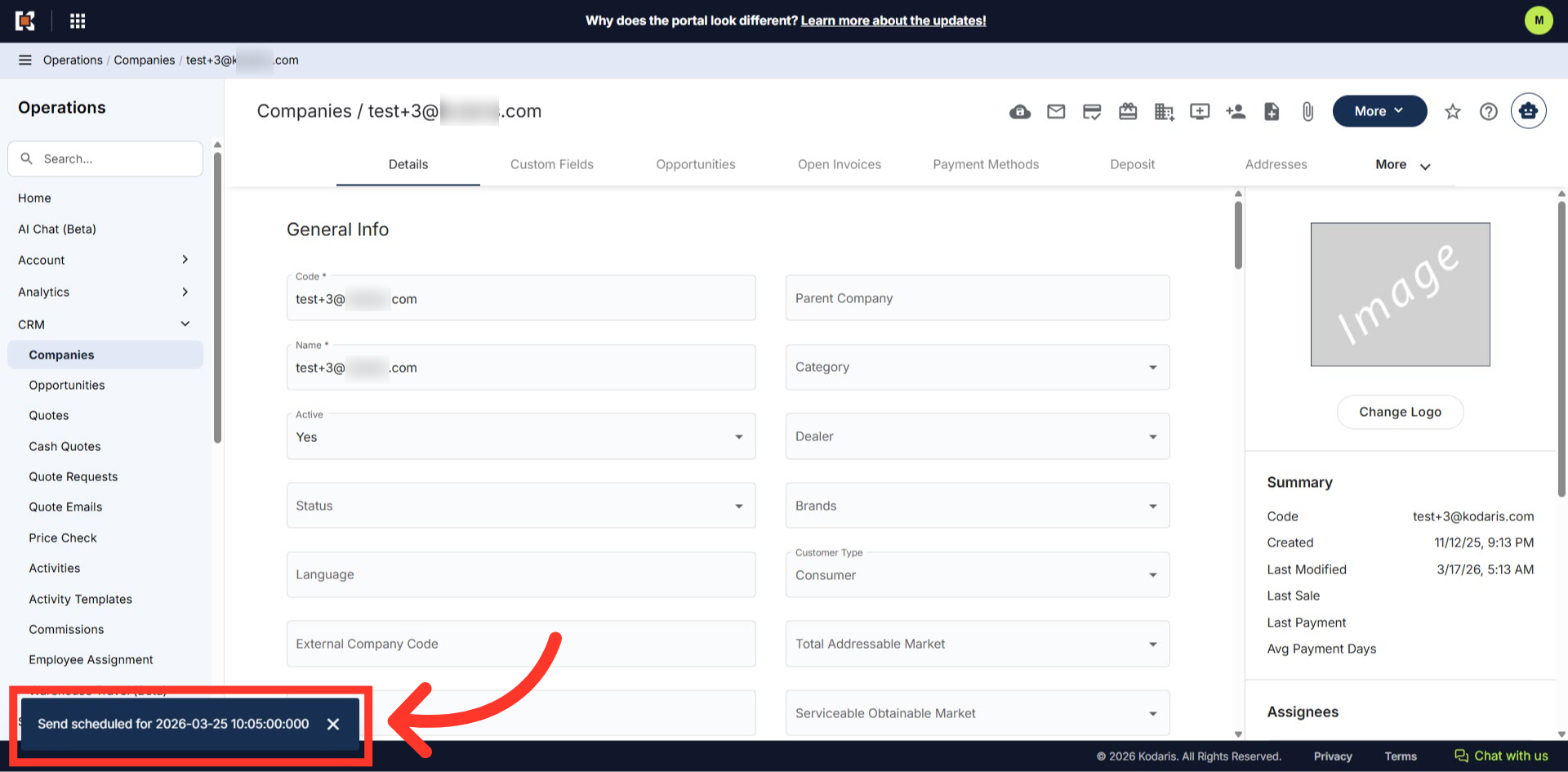 You can view a log of all scheduled and sent emails to the specific customer on the "Emails" screen.