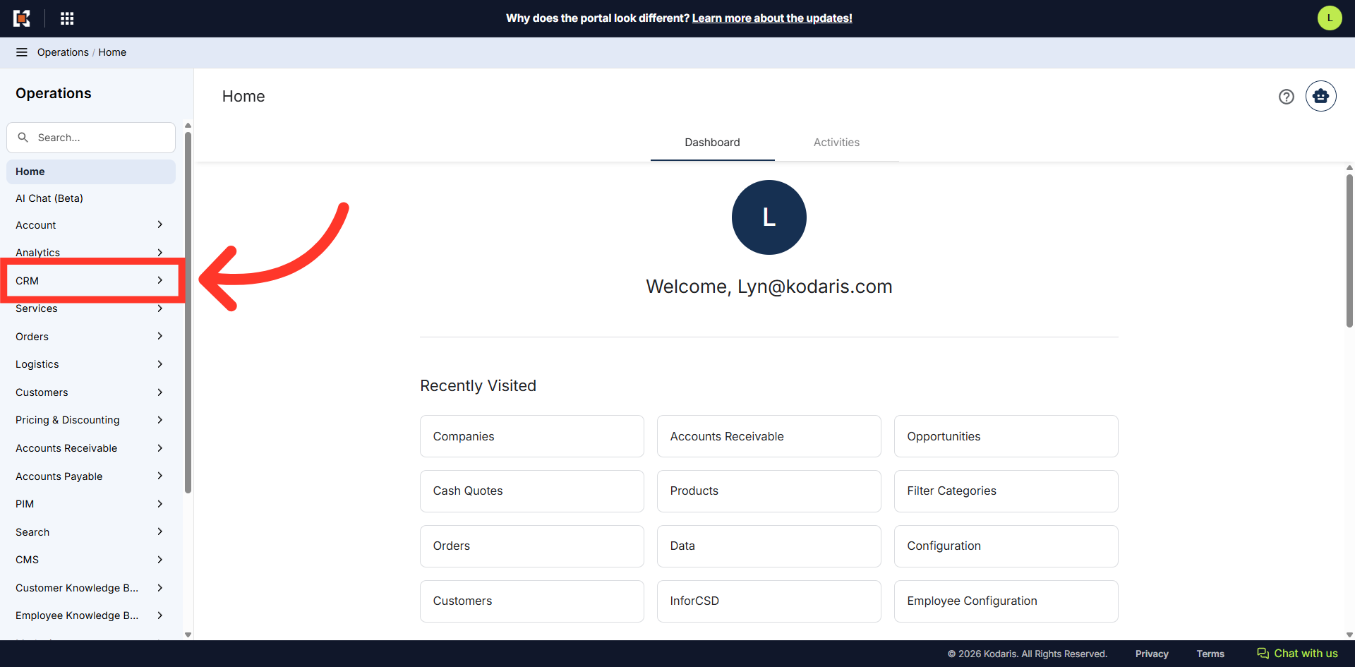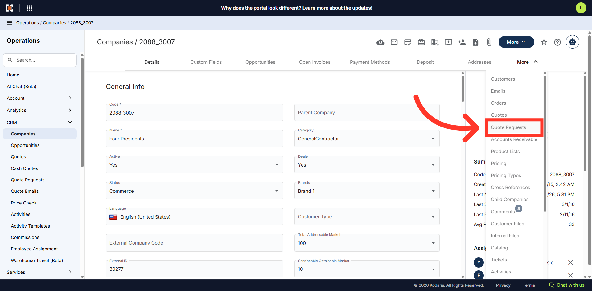 To view all quote requests associated with a customer, navigate to the "CRM" section in the Operations Portal.