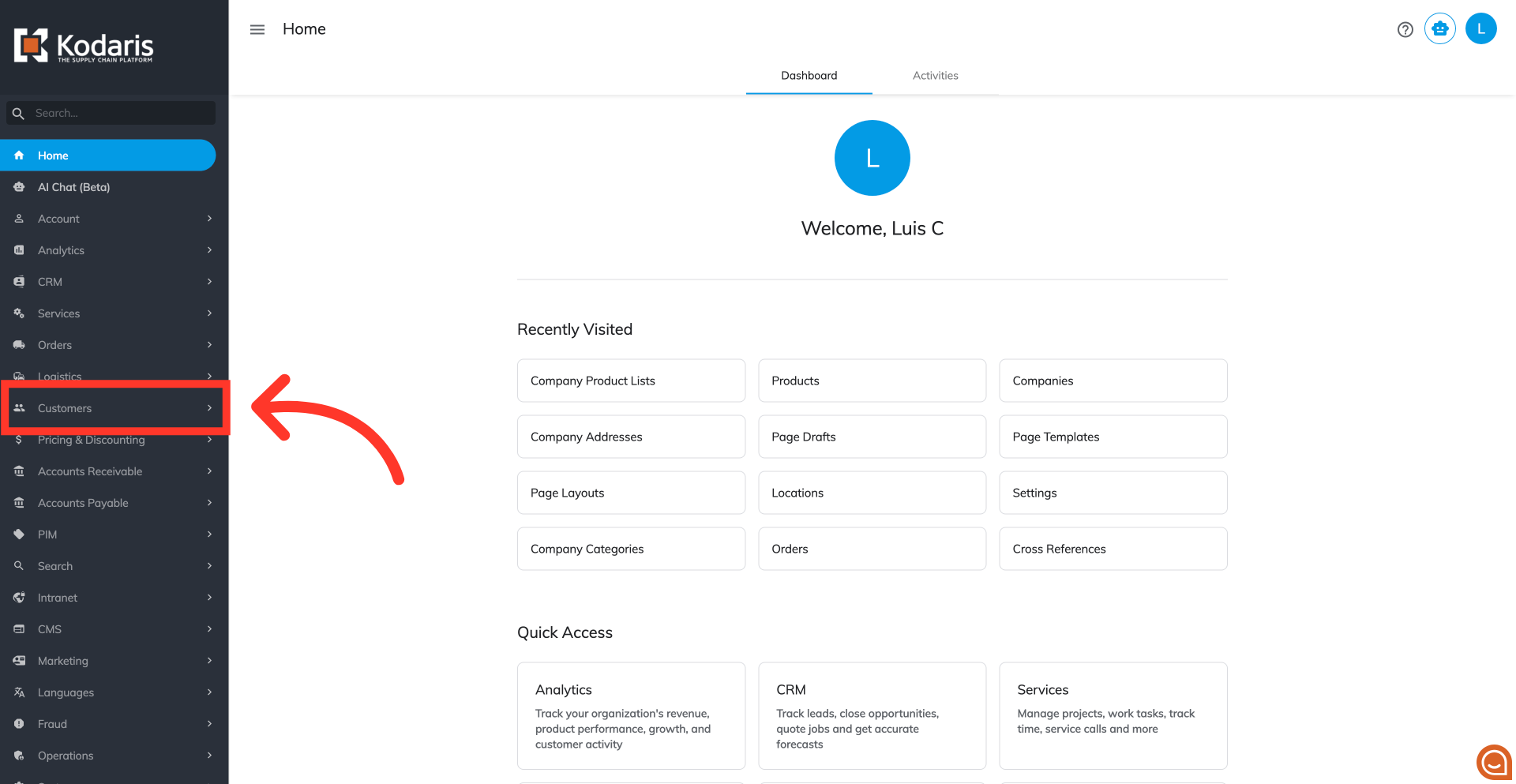 To control which ship-to addresses are displayed to customers on your commerce website, navigate to the "Customers" section in the Operations Portal.