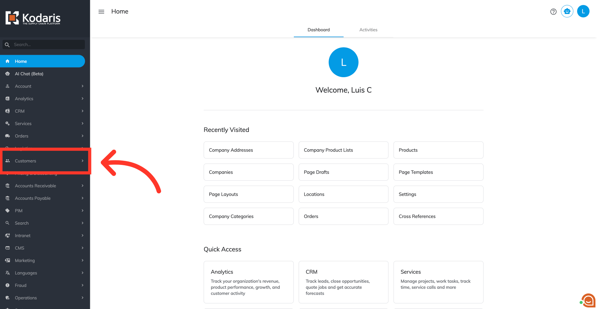 To display or hide ship-to's on the commerce site by import, navigate to the "Customers" section in the Operations Portal.