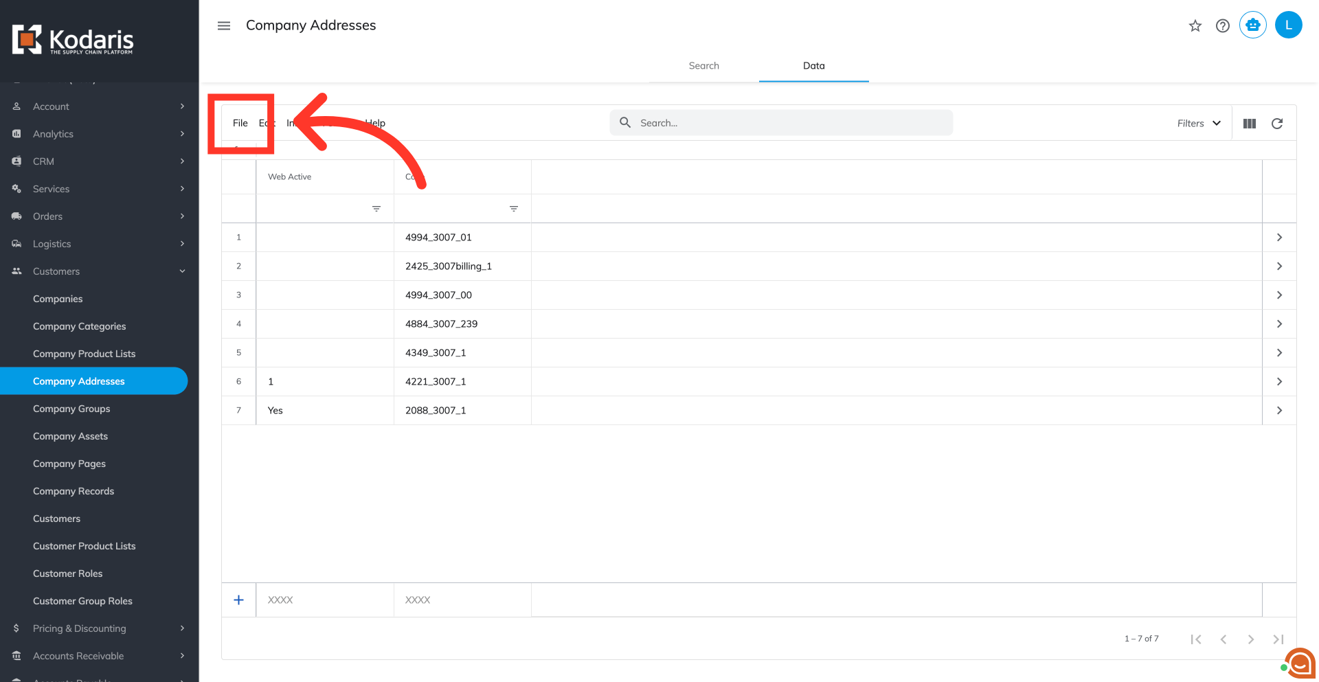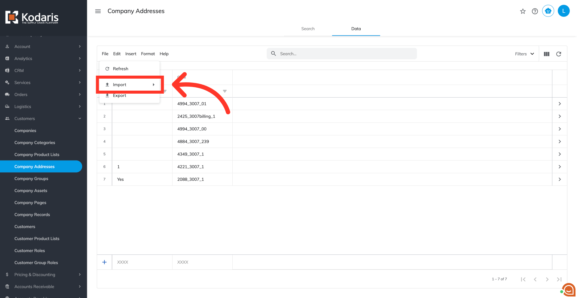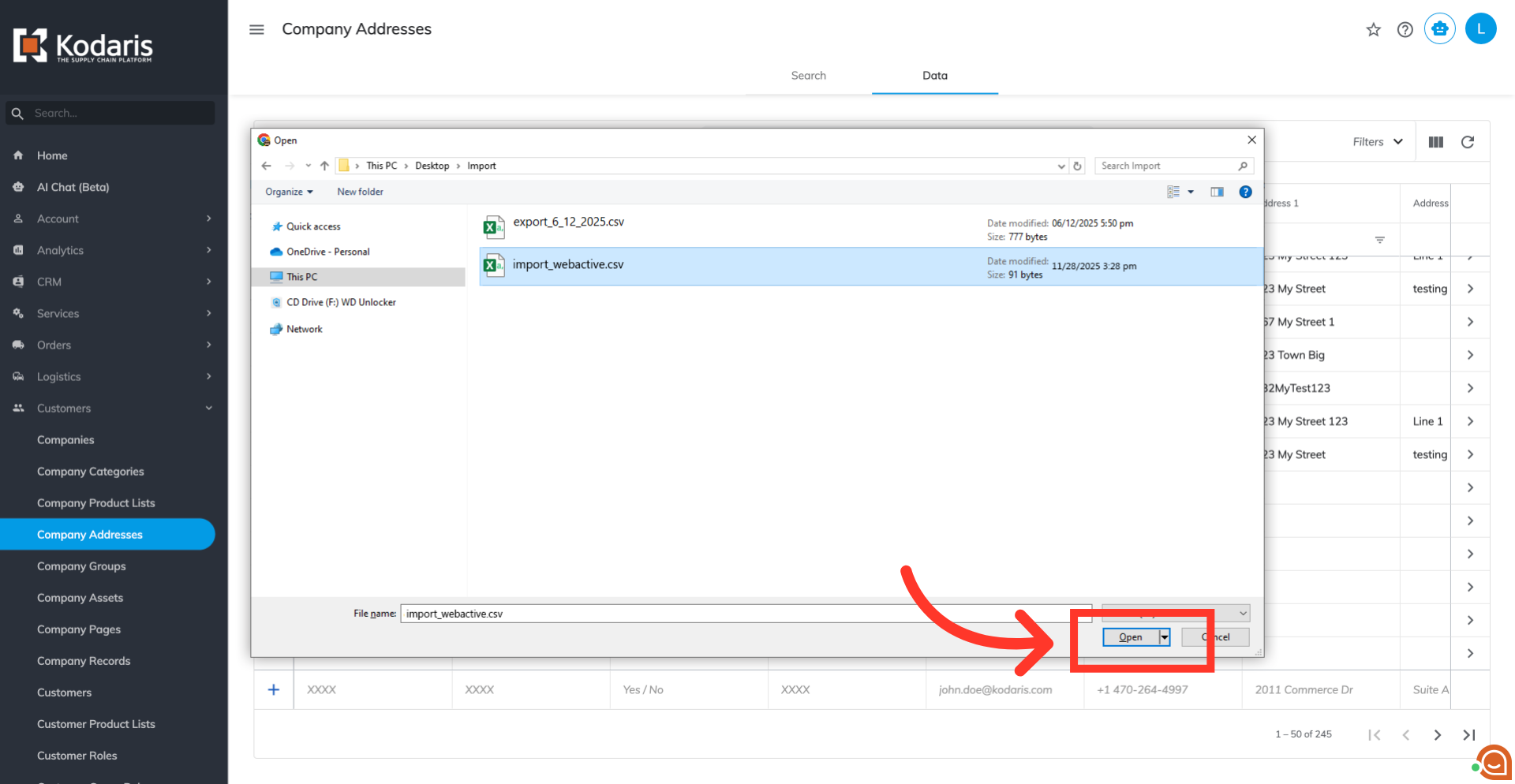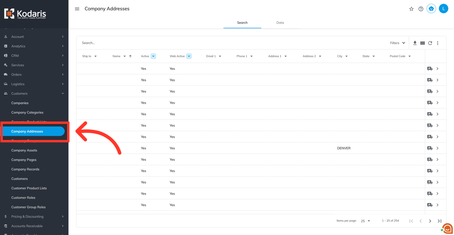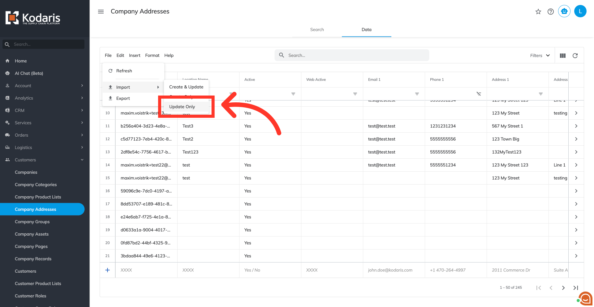 Click "Company Addresses". In order to access and update "Company Addresses",the account must be set up either as an "administrator" or a "superuser", or have the roles of "companyAddressEdit" and "companyAddressView", along with "importEdit" and "importView". These last two roles are needed for importing.
