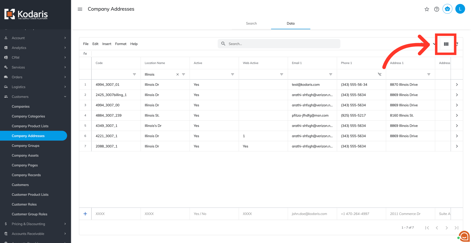 Click the "Show/Hide Columns" icon.