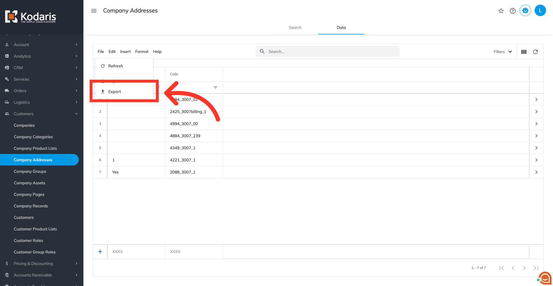 Then, select "Export." This exported file will serve as a template for your import as it has the necessary column headers.