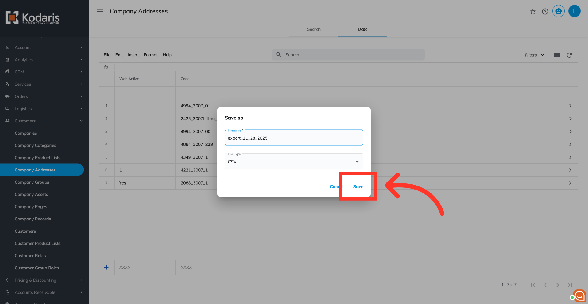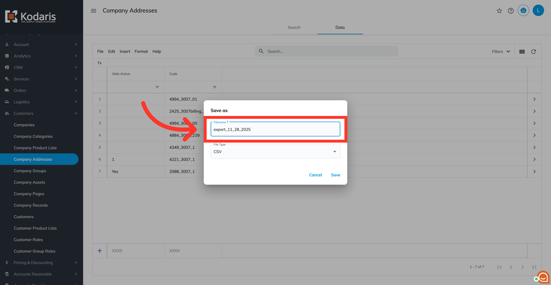 The "code" value from the exported file must remain unchanged. These values serve as identifiers for the system to correctly recognize which shipto location requires updating.