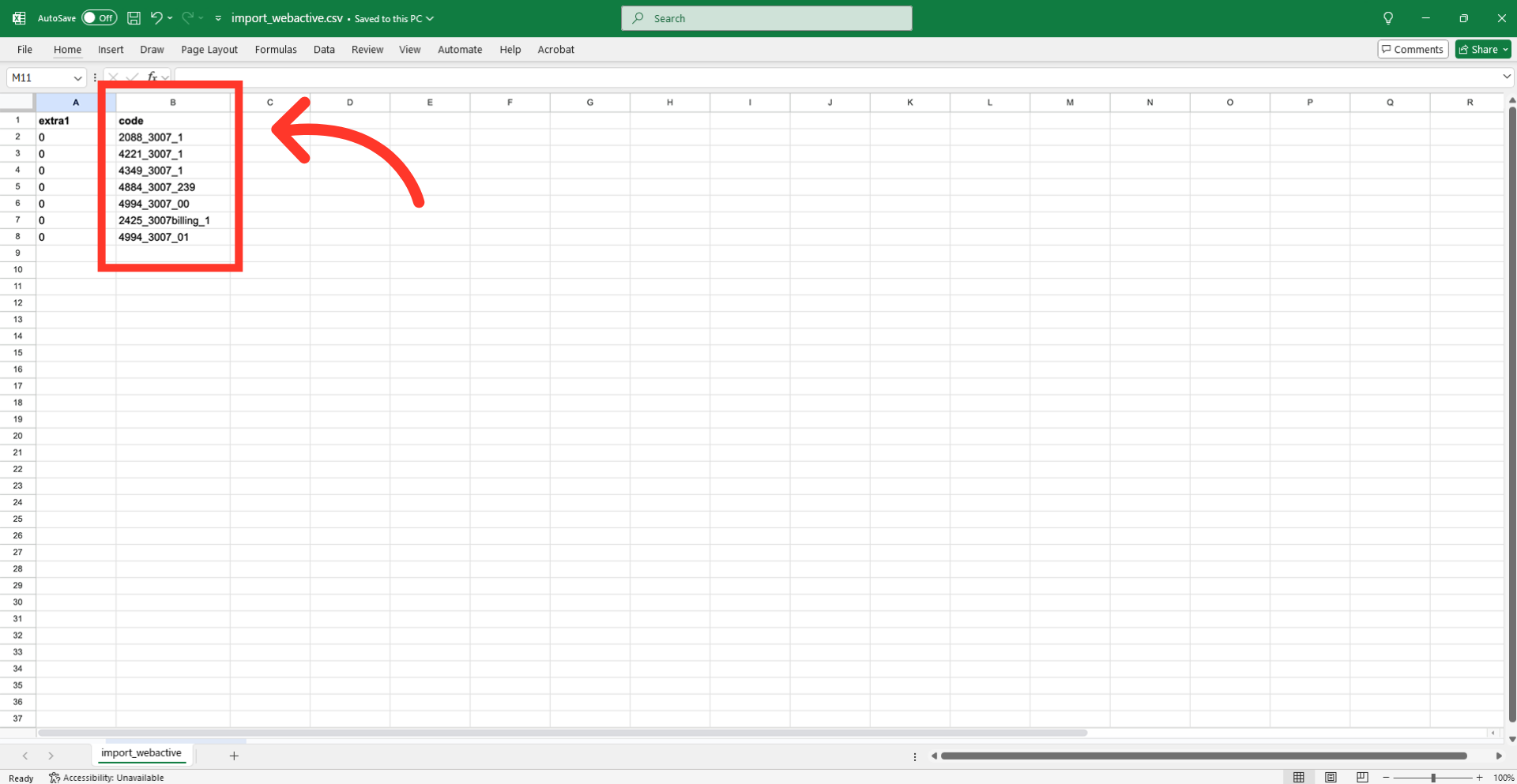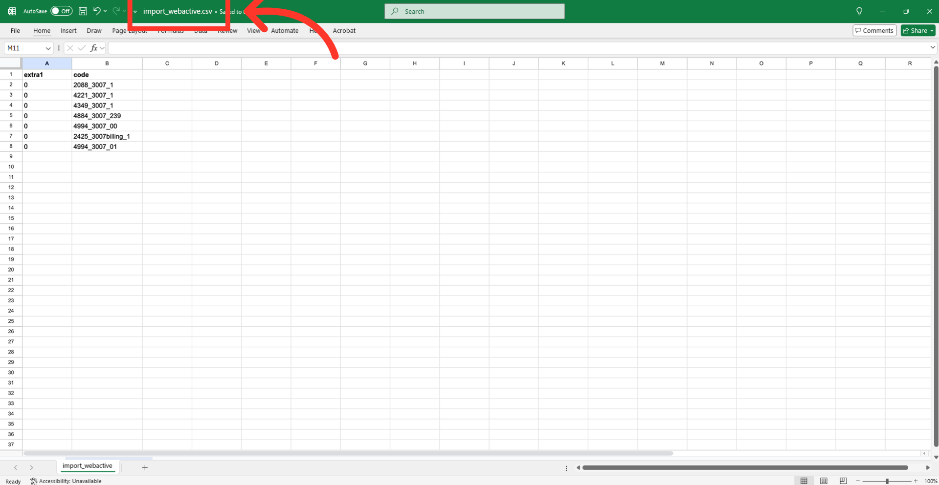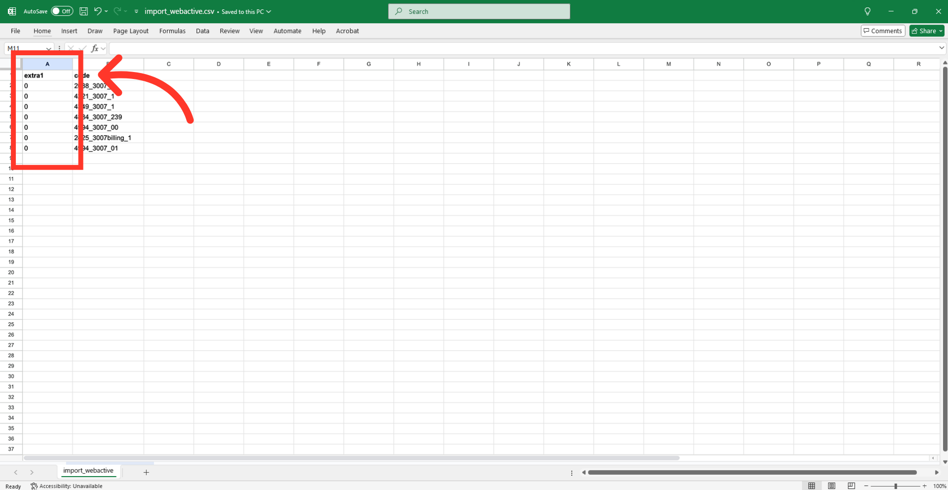 After completing the necessary changes, save the spreadsheet as a "CSV" file for import. Ensure the spreadsheet contains only the data you intend to update.