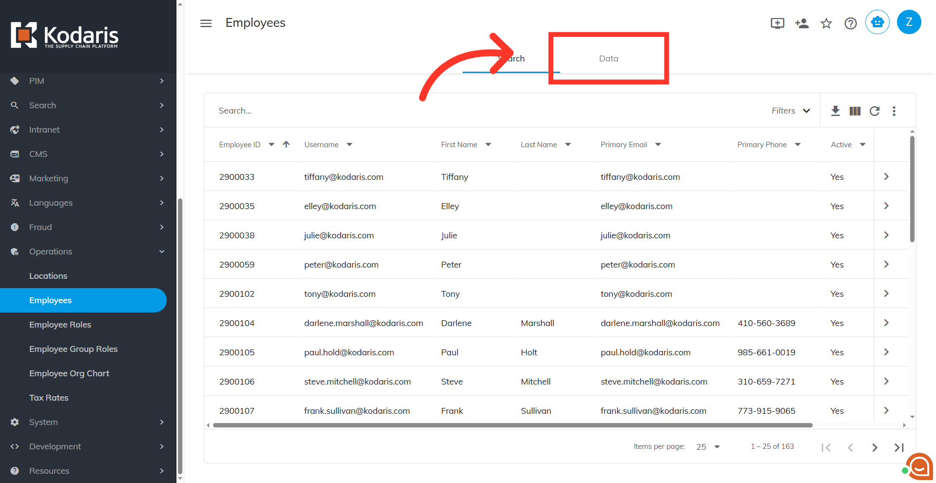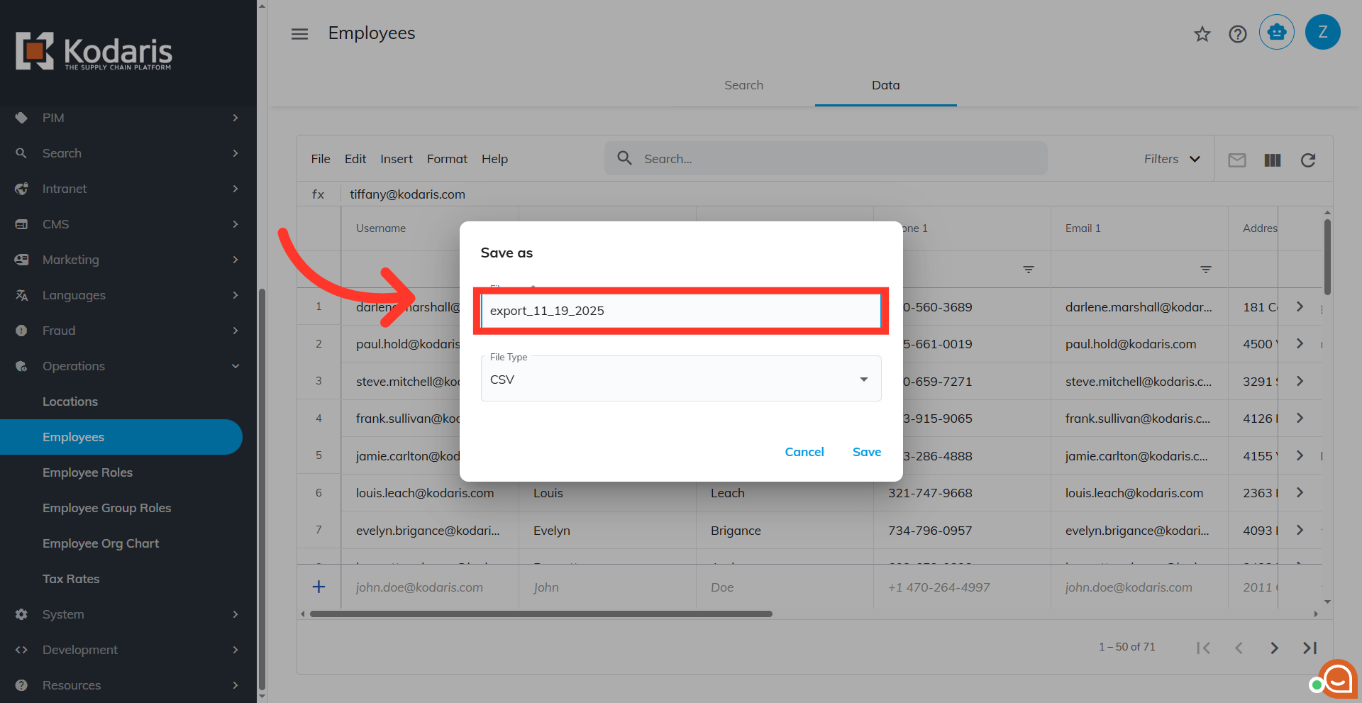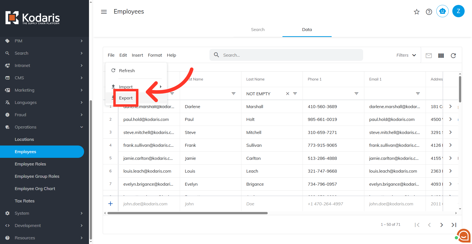 To export employee data, navigate to the "Operations" section in the Operations Portal.