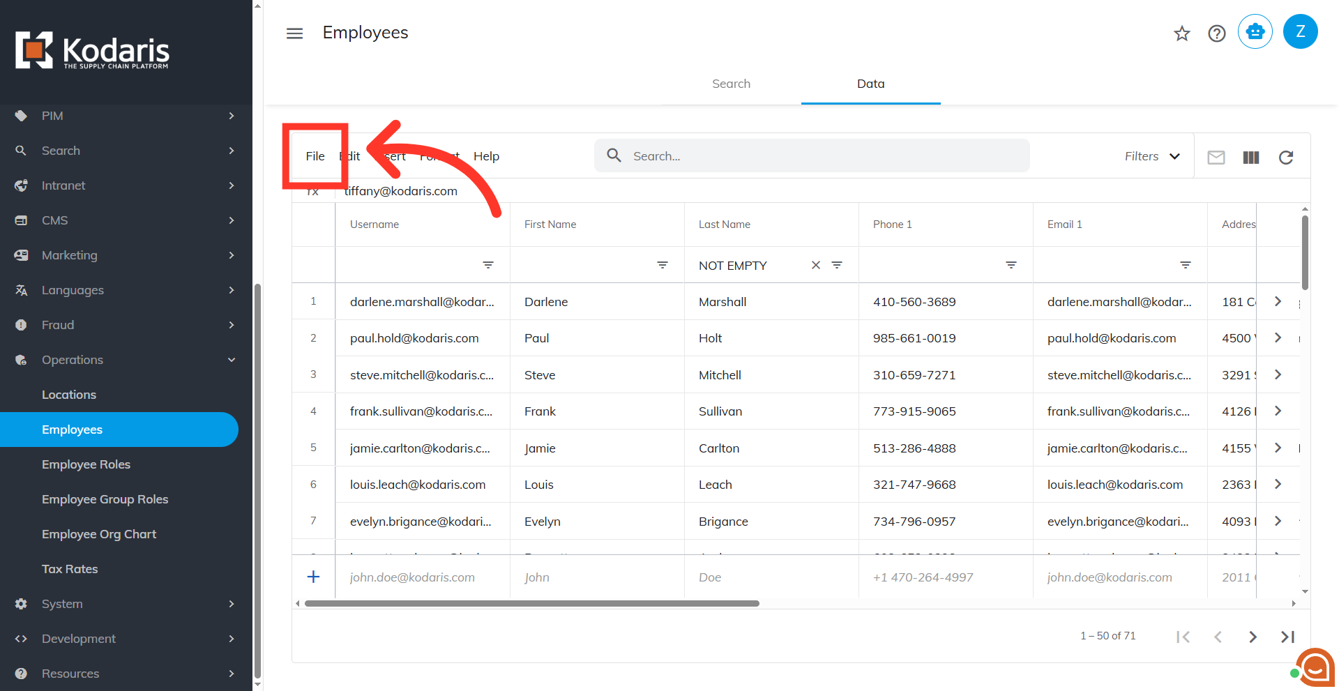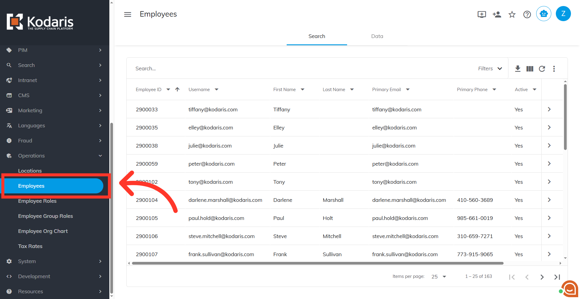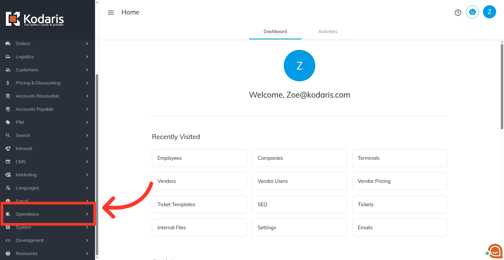 To export employee data, navigate to the "Operations" section in the Operations Portal.