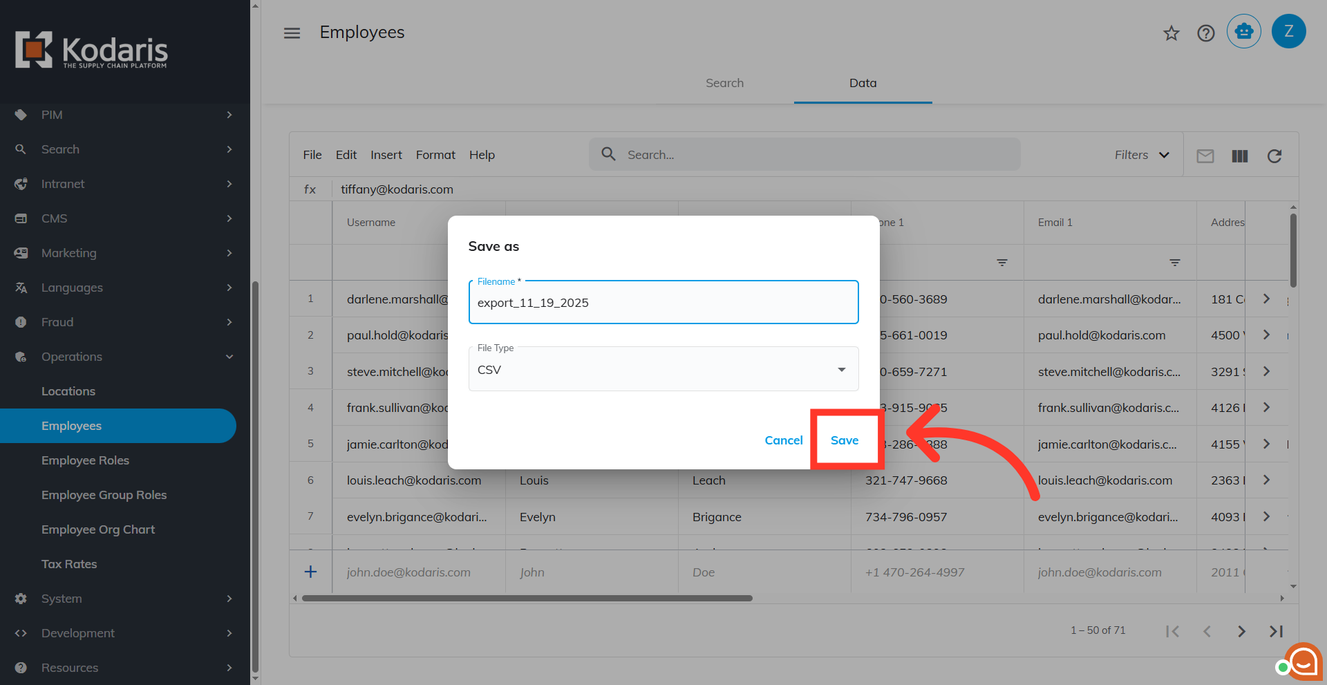 Click "Save" to start the export process. If you are exporting a large amount of data, it may take a small amount of time to complete the export.