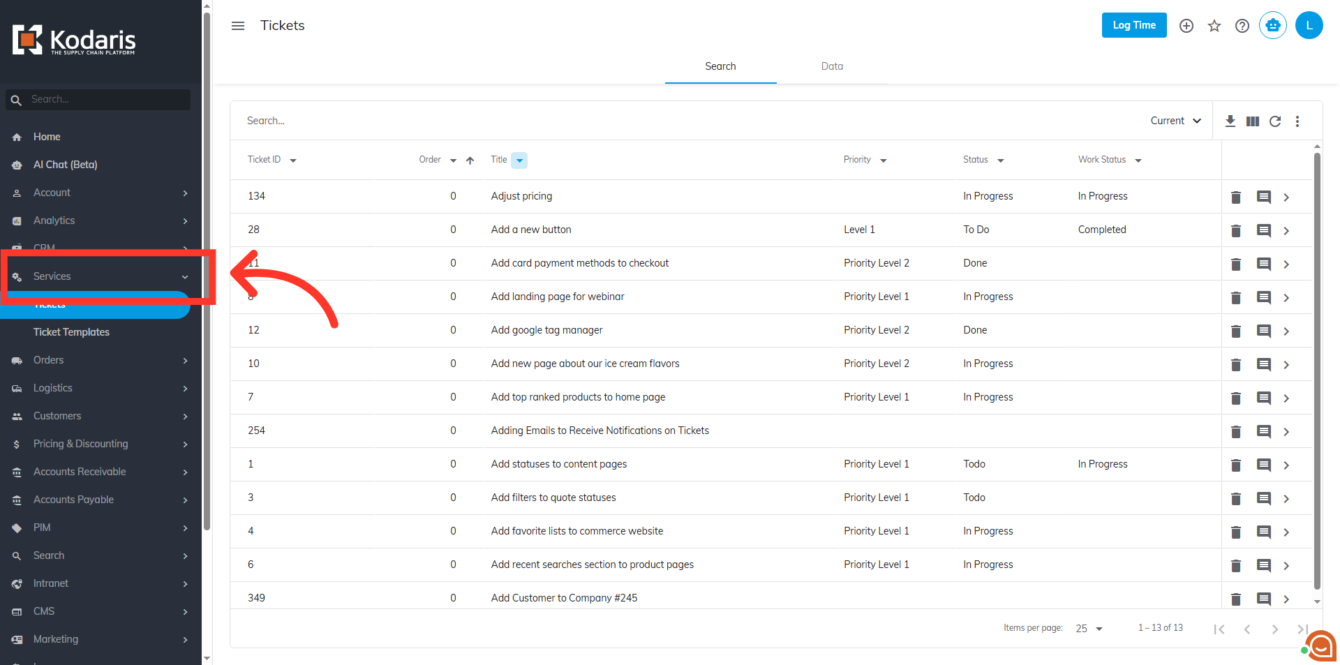 Once you have set up your desired ticket flags, navigate to your "Services" section to verify the updates.