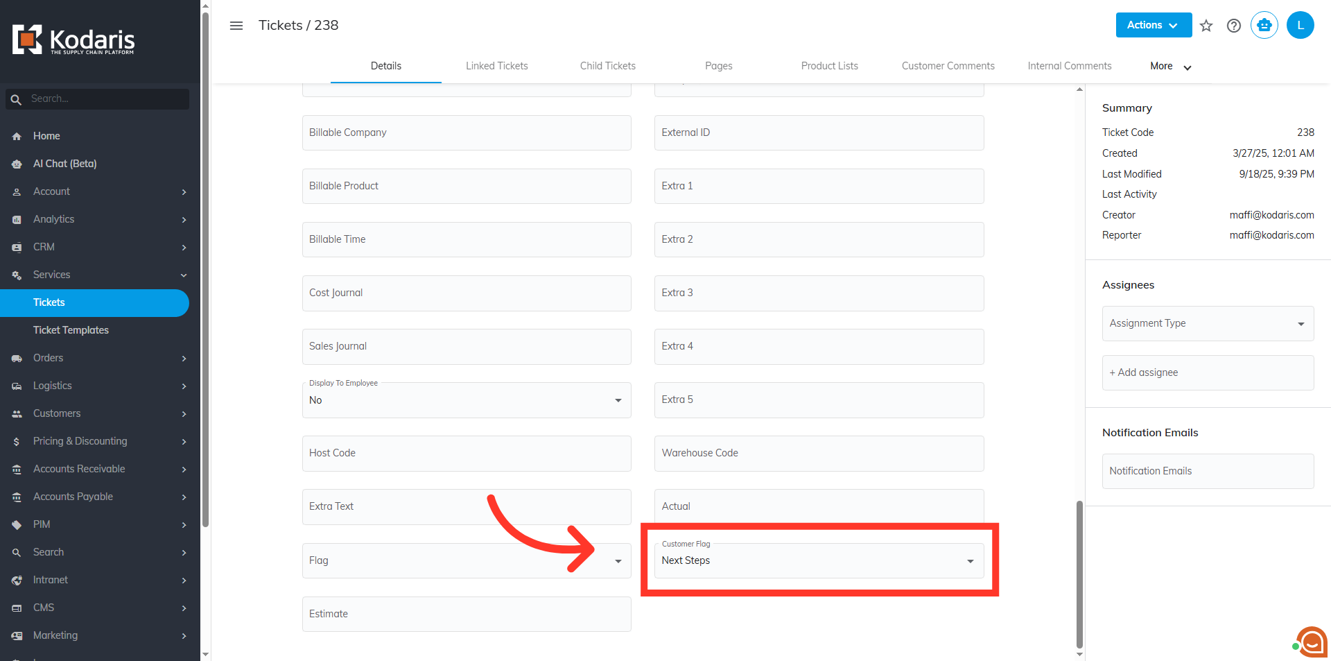 Then, click on the more details icon to access "Customer Ticket Flags" setting details.