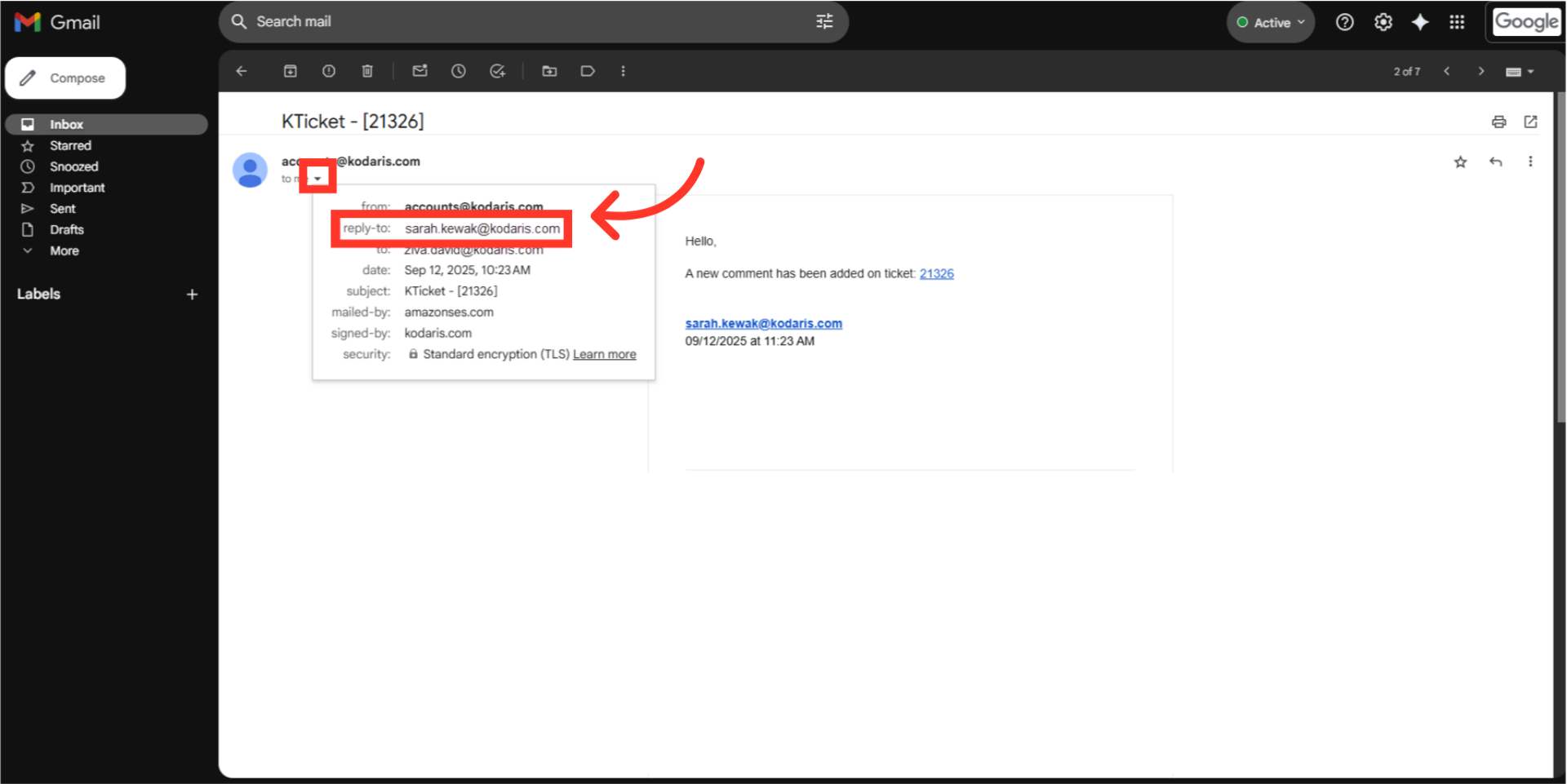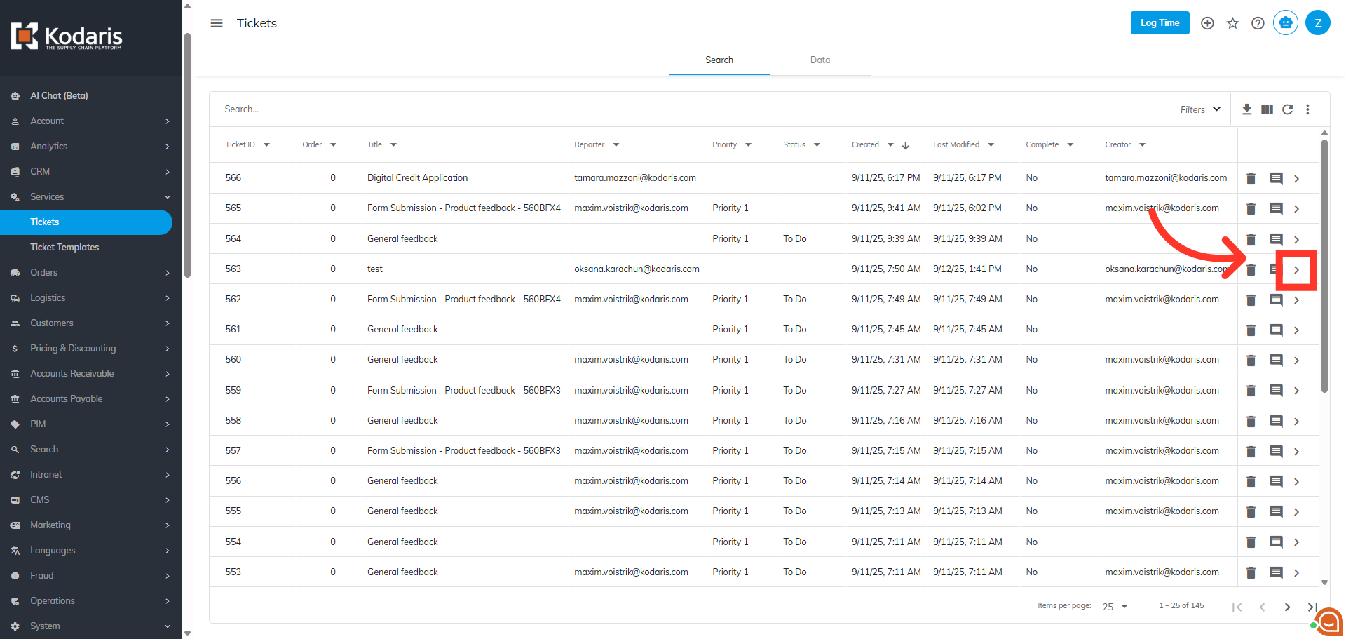 Locate the ticket and click the more details icon.