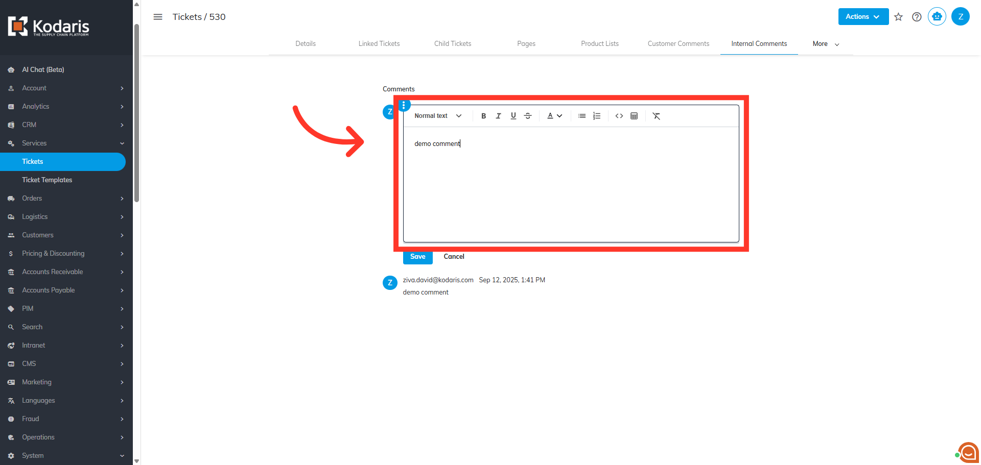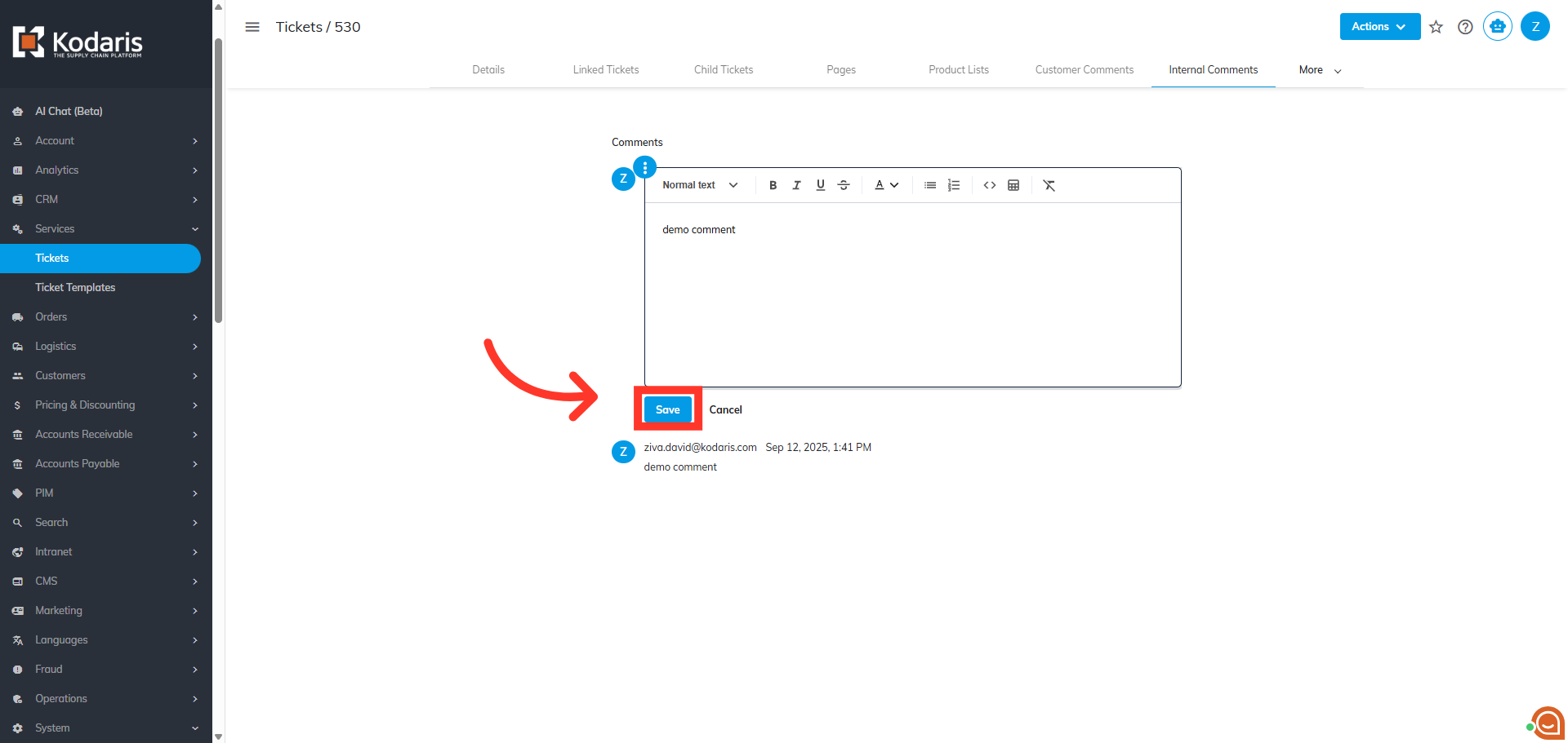 Then, click "Save". Leaving a comment to this ticket will trigger ticket update notification.