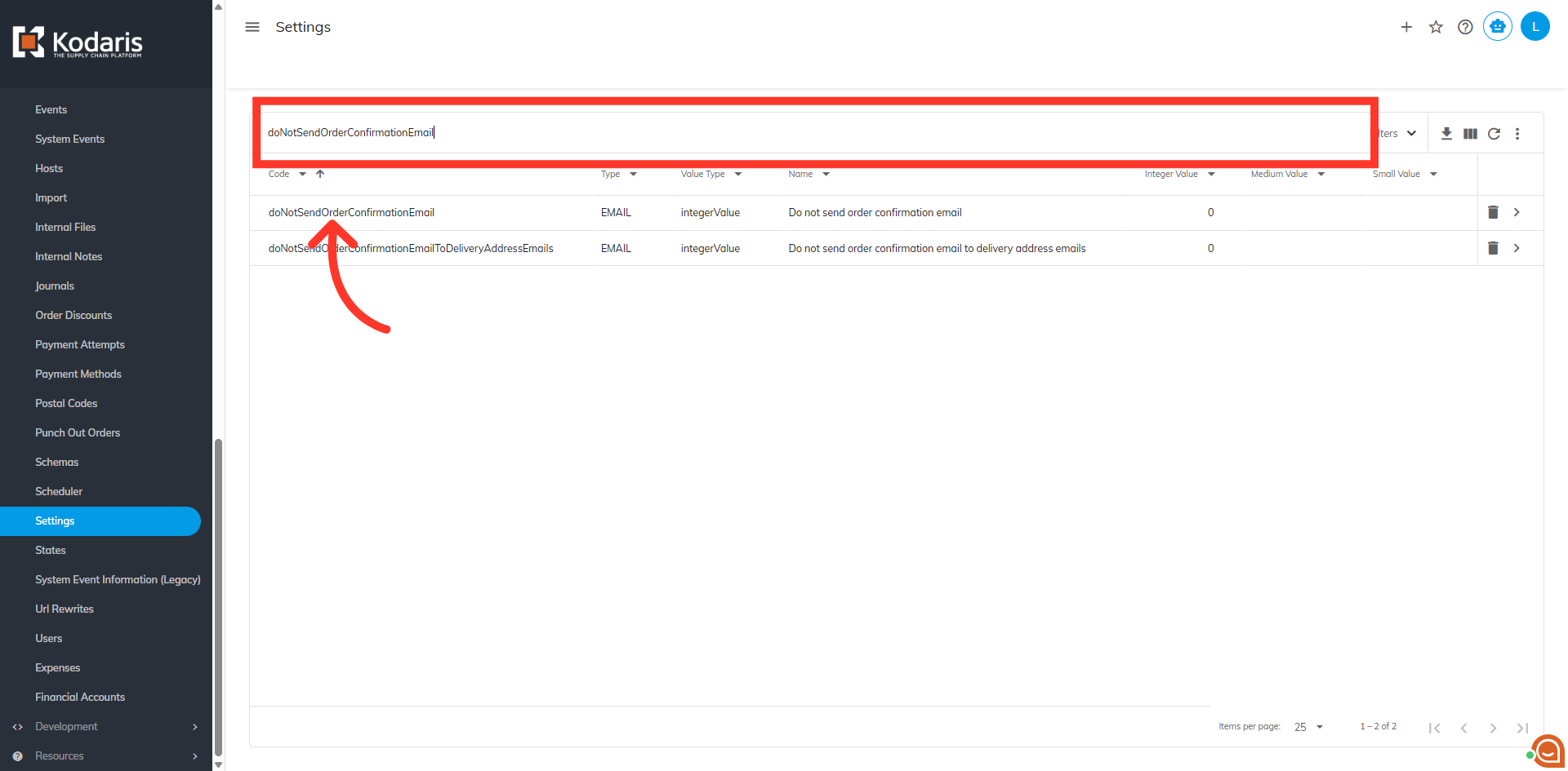 Second, search for the "Do Not Send Email" setting code. Type in "doNotSendOrderConfirmationEmail".