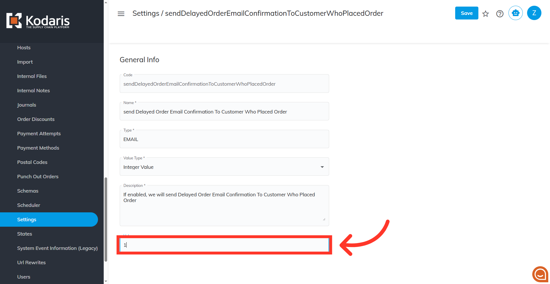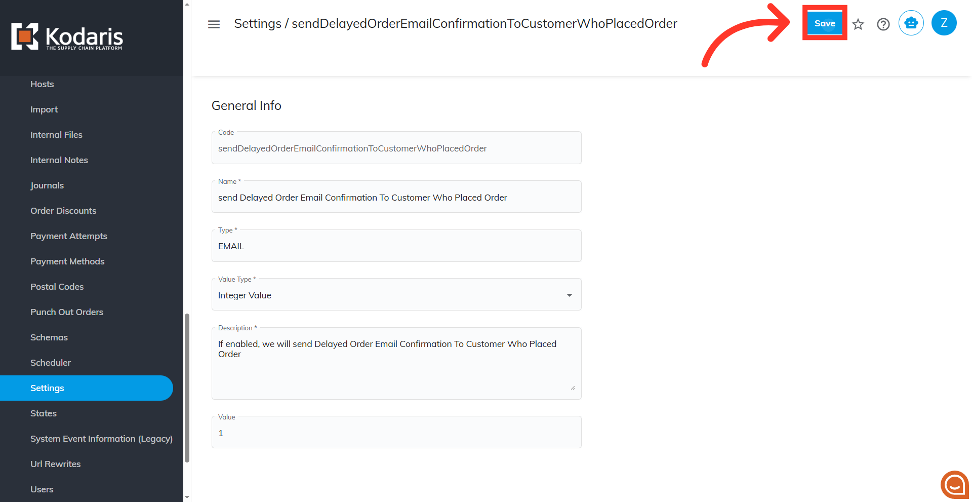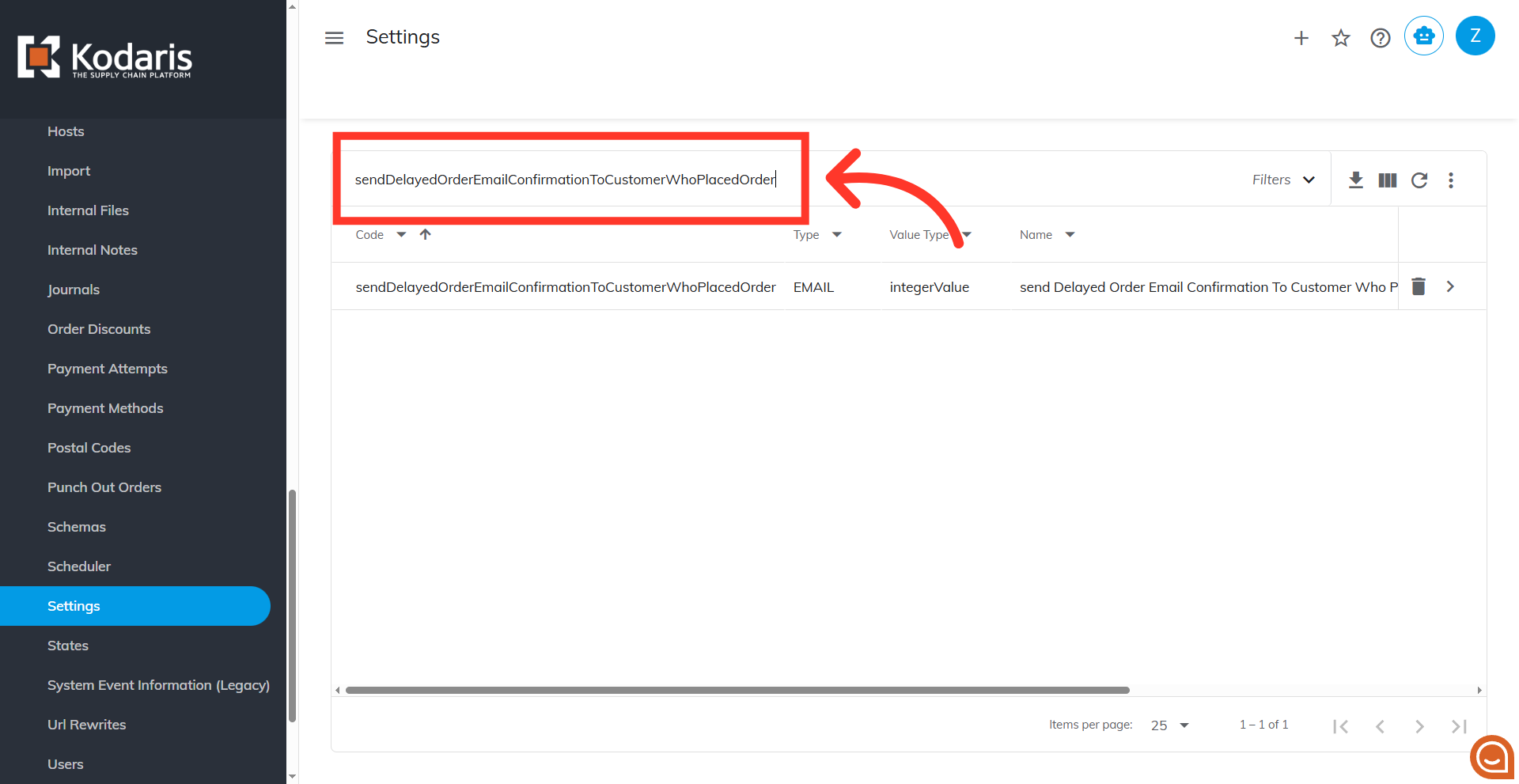 If you would also like the confirmation email to go to the person who placed the order, rather than the billing & delivery email addresses on file, you’ll configure this setting. Search "sendDelayedOrderEmailConfirmationToCustomerWhoPlacedOrder".