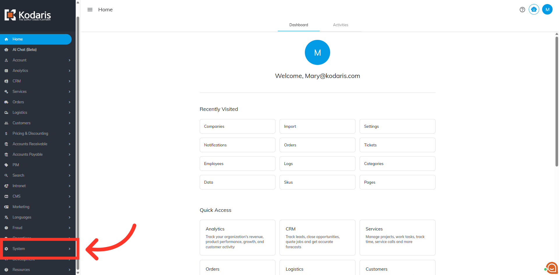 To create customer catalogs by import, navigate to "System" in the Operations Portal.