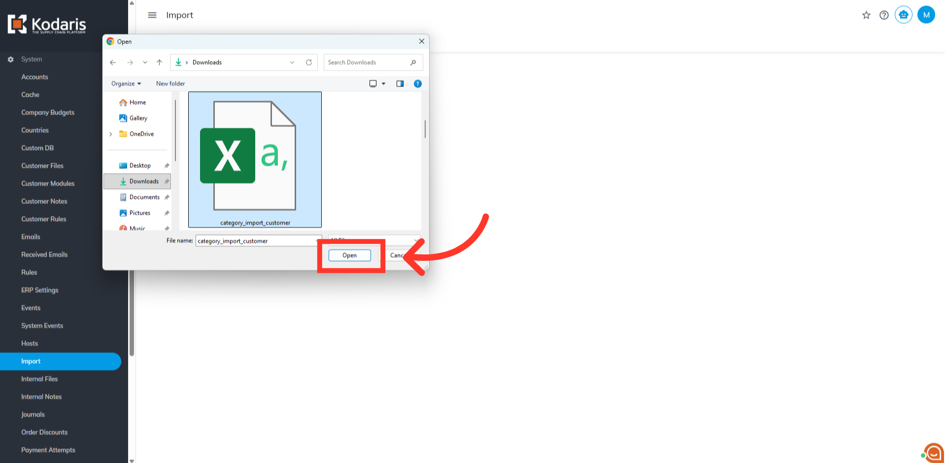 Your file folder will populate. Choose the CSV file you would like to import. Please be sure that you select the correct file, as there are no rollbacks for imports. Select the file and click "Open".