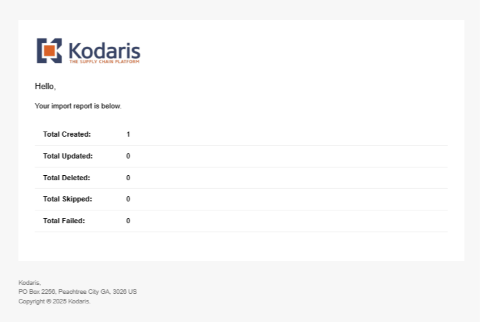 An import report email will be sent to you with the import results.