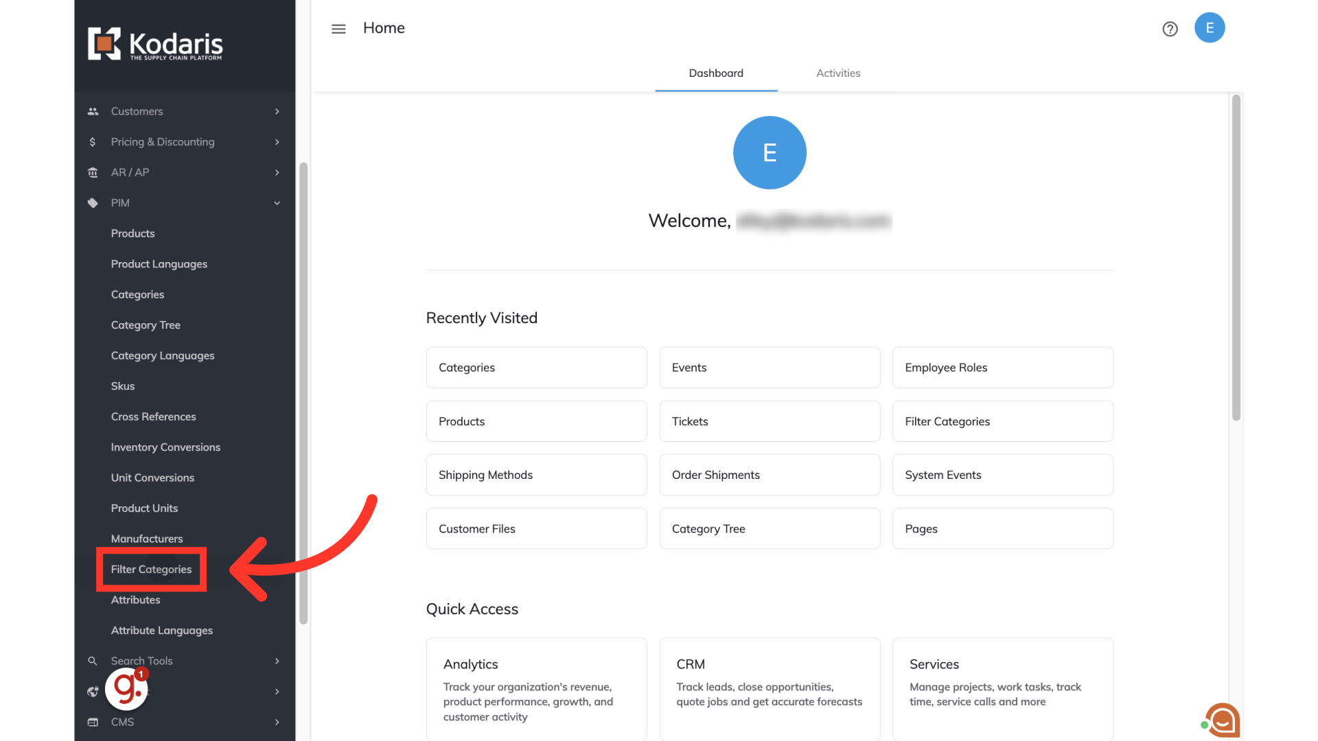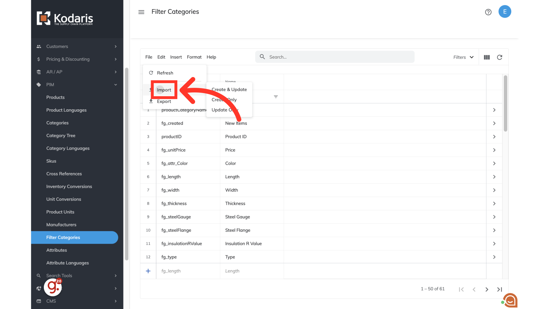 If there are multiple filter categories that need to be deleted in the operations portal, you can delete them by running a special import in the operations portal. Since deleting filter categories can affect a lot of data, the best practice is to run the deletion imports after business hours. To start, navigate to the "PIM" section in the Operations Portal.